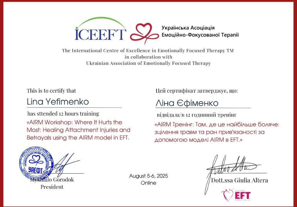 — Українська асоціація емоційно-фокусованої терапії (EFT)
