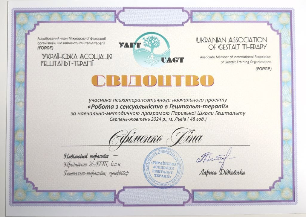 навчальний проєкт «Робота з сексуальністю в гештальт-терапії» (48 годин)