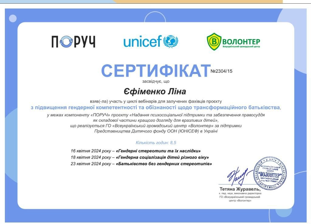 цикл вебінарів для залучених фахівців проєкту з підвищення гендерної компетентності та обізнаності щодо трансформаційного батьківства