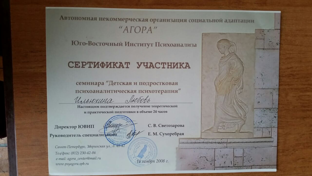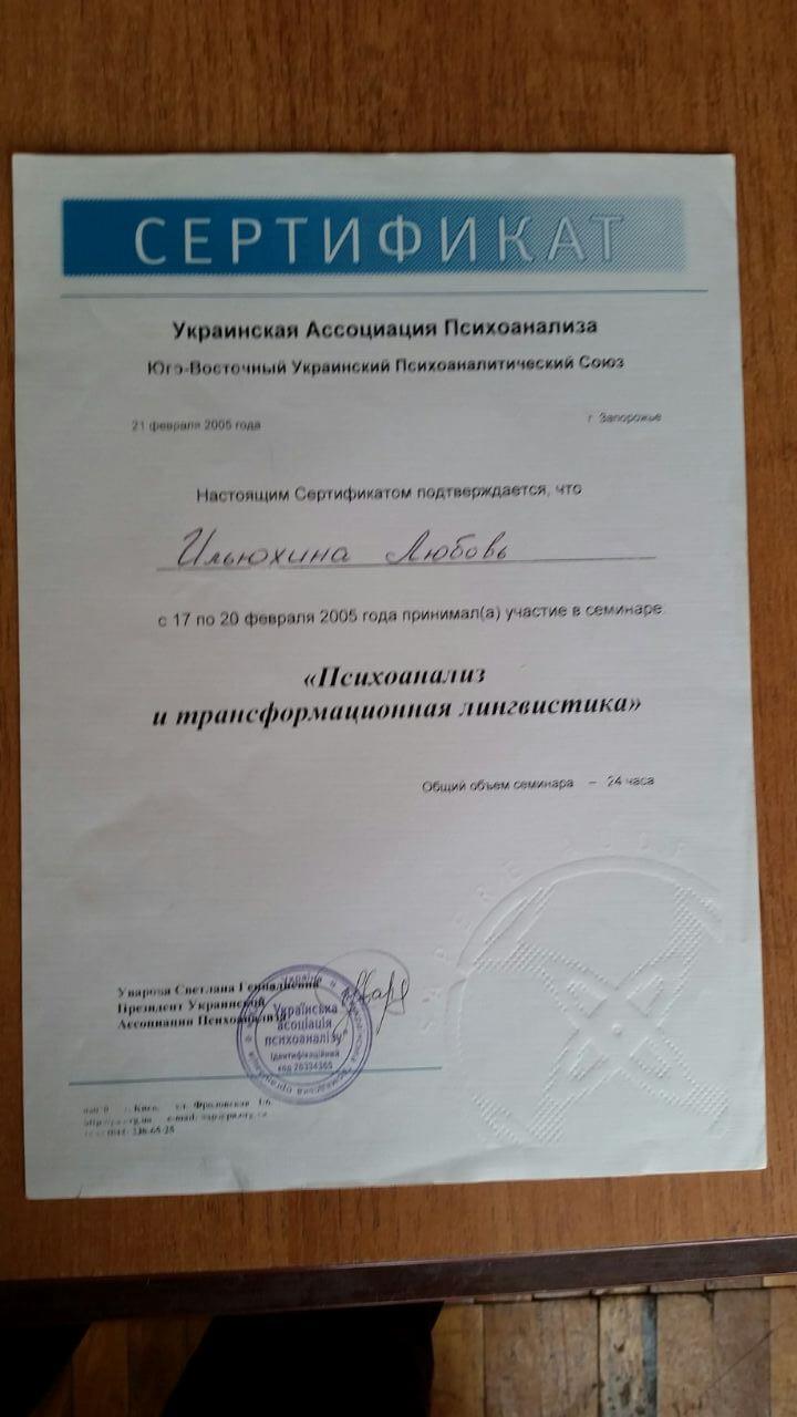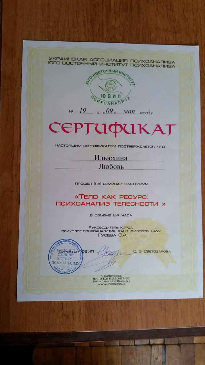 Міжнародний інститут глибинної психології м.Київ, спеціальність Психологія та психоаналіз, 2006 рік, стаж роботи 15 років.