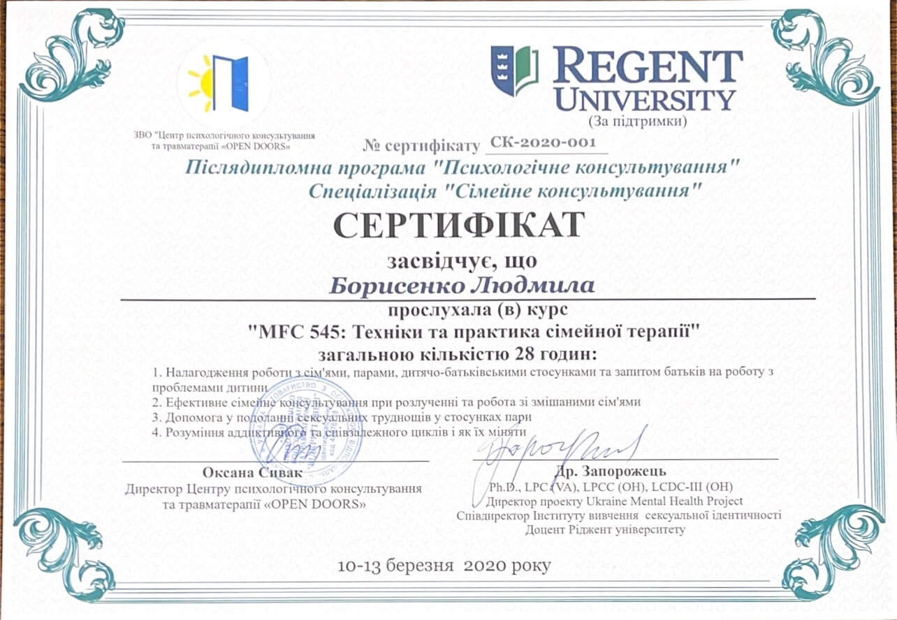 20 FA MFC 545: "Техніки та практика сімейної терапії"