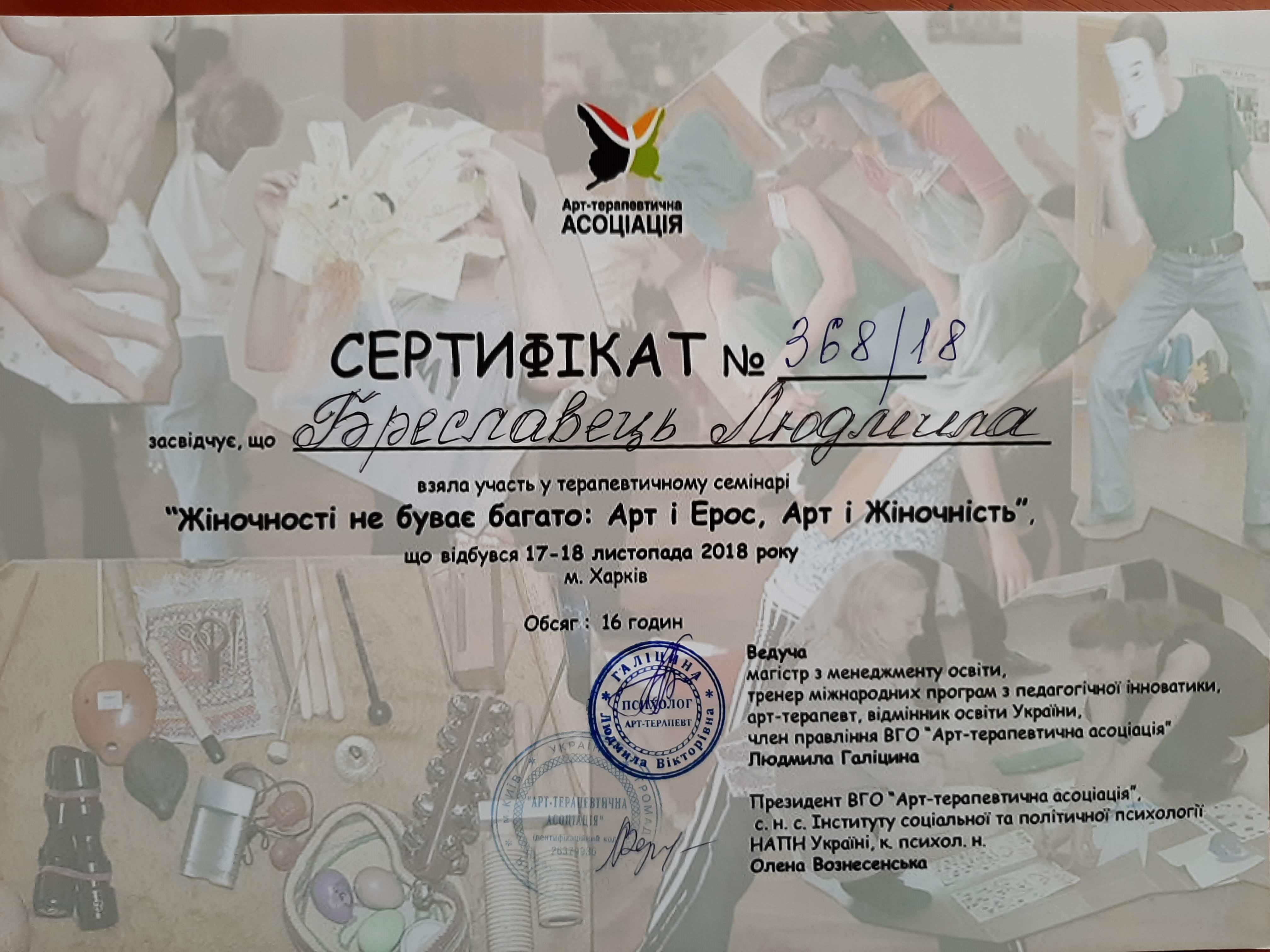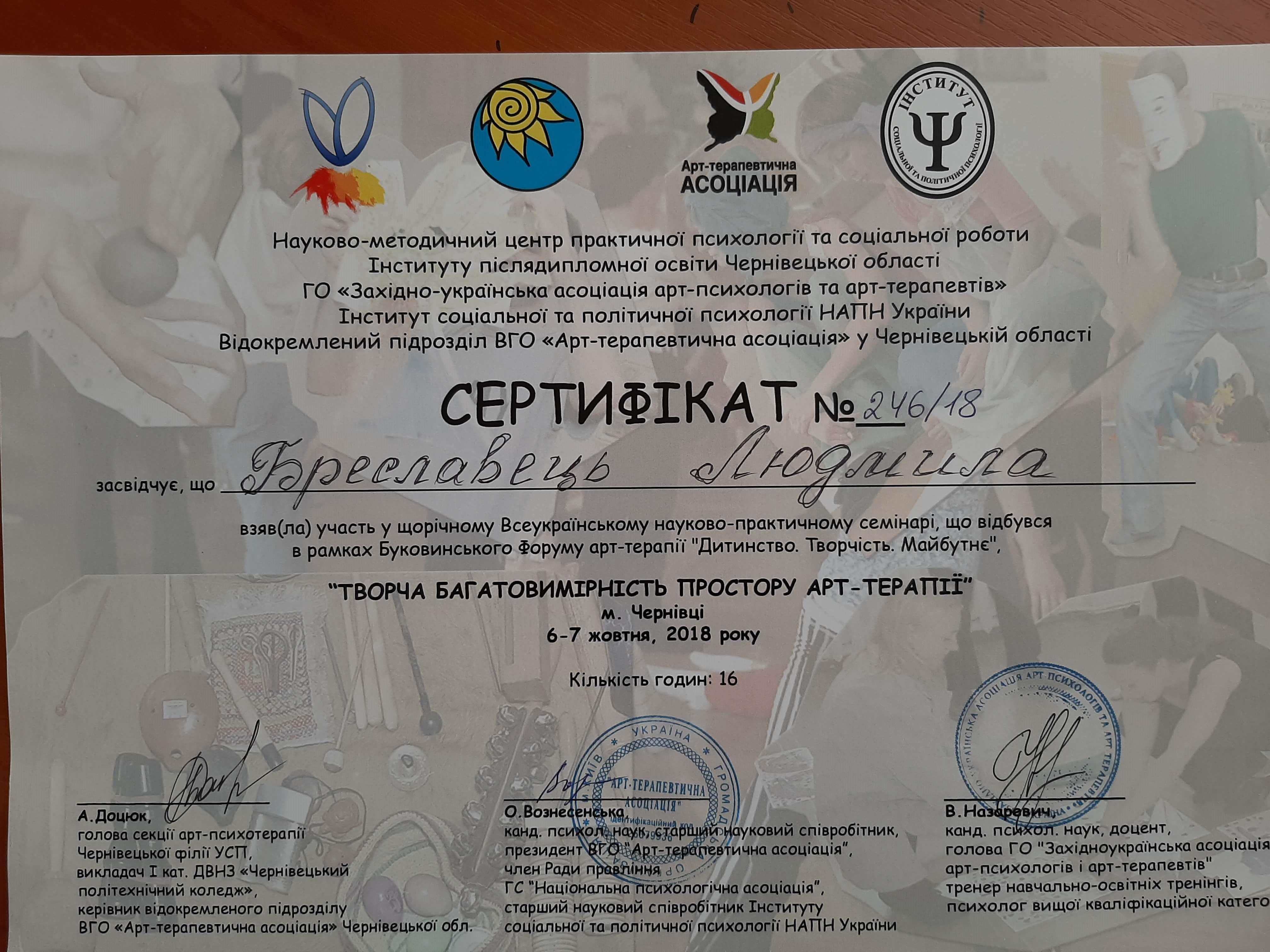 Досвід роботи у консультуванні 16 років. Відповідально ставлюся до своєї роботи. М'яко і дбайливо супроводжую клієнтів, відкрита, товариська, маю професійну компетентність. Постійно підвищую свій професійний рівень. Учасник багатьох вебінарів, курсів, майстер-класів, конференцій. Вже три роки працюю директором інклюзивно-ресурсного центру. Закінчила у 2007 році ХНУВС, спеціальність психолог. Пройшла навчання "Консультування від А до Я". У 2019 році закінчила навчання за 360-годинною програмою "Теорія та практика арт-терапії: розмаїття підходів" та отримала сертифікат. Пройшла навчання за методиками CASD, Conners-3, WISC-IV, Leiter-3, PEP-3 та занесена до Всеукраїнського реєстру сертифікованих користувачів. Маю досвід роботи з дітьми з особливими освітніми потребами.
