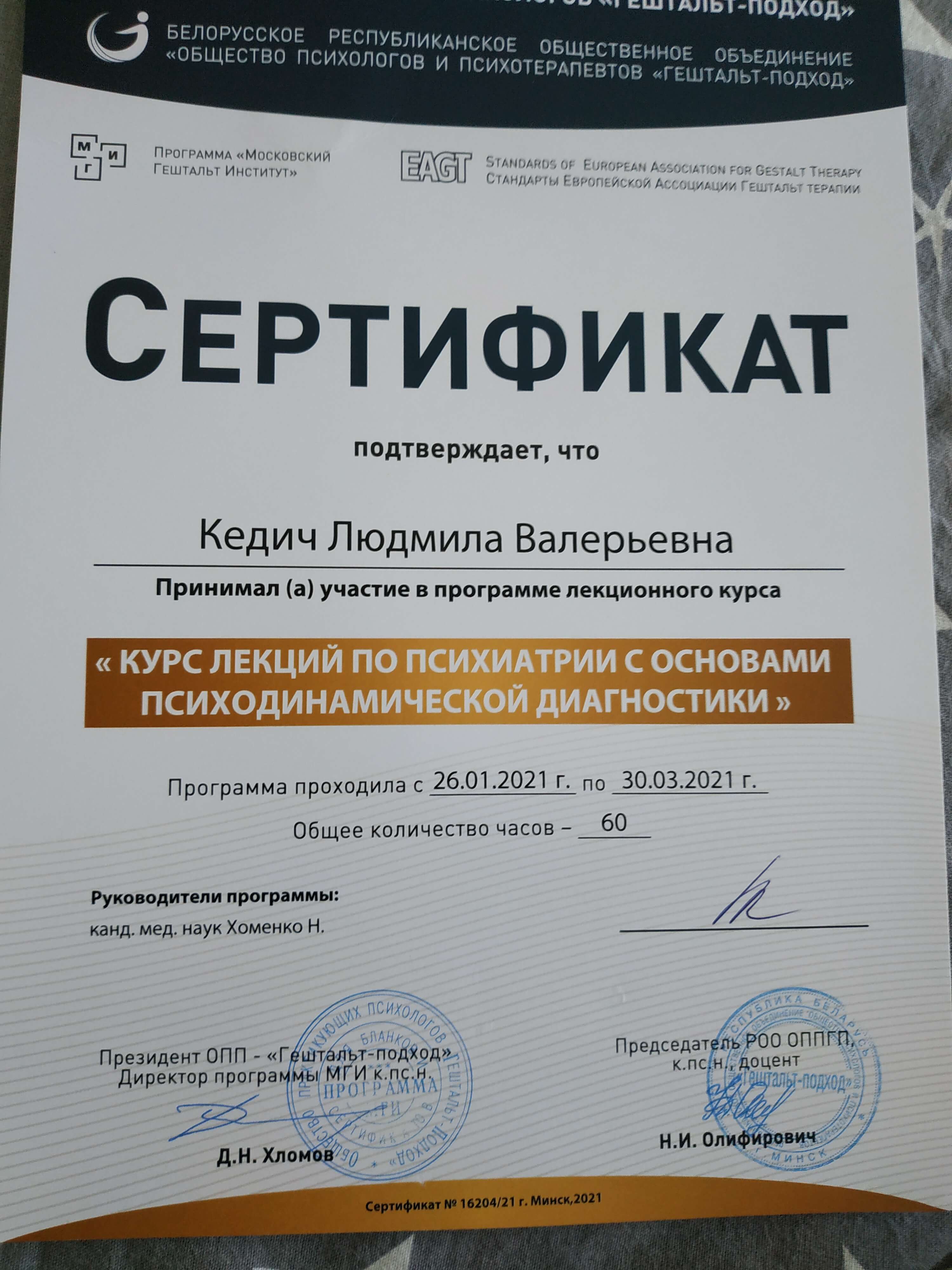 26.01.2021 - 30.03.2021, Кількість годин - 60