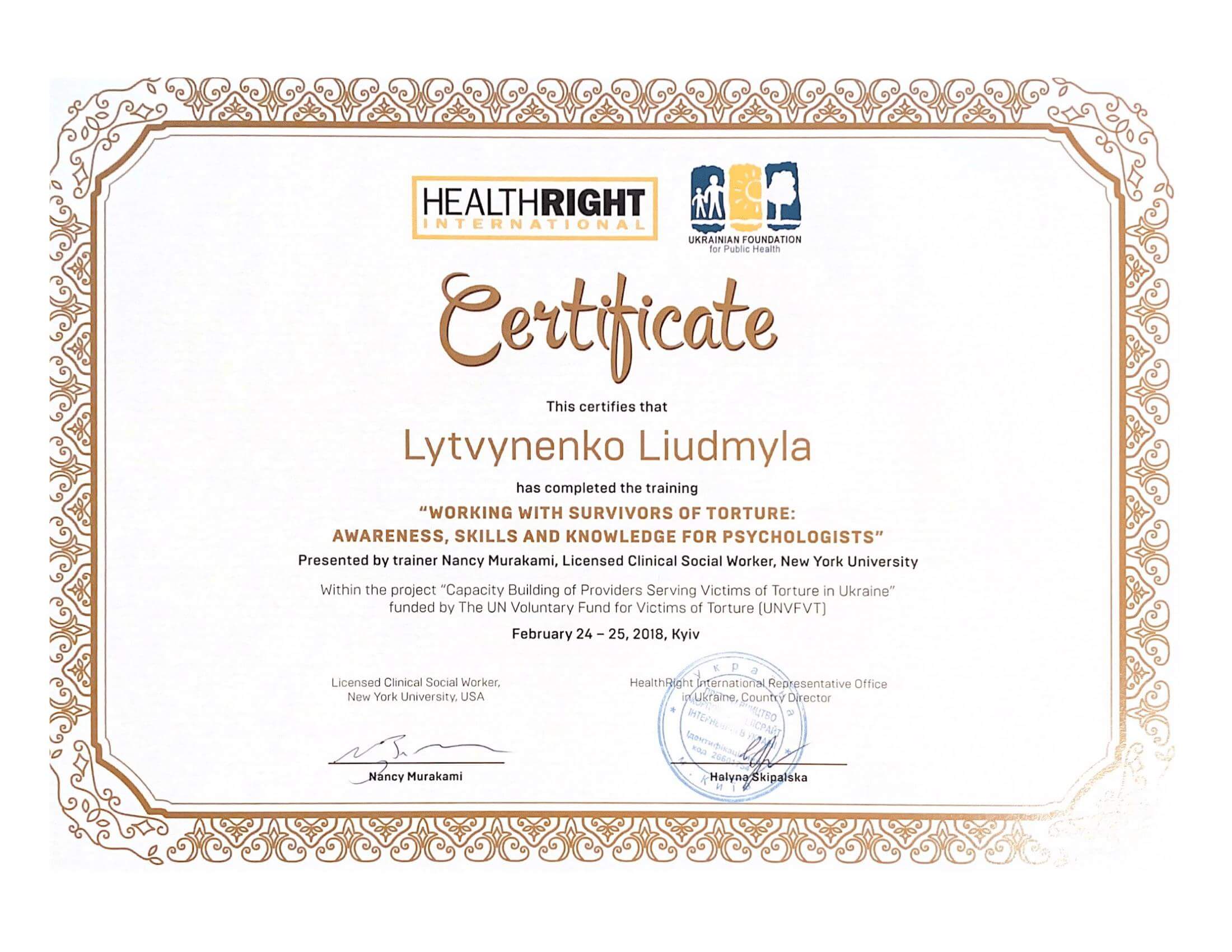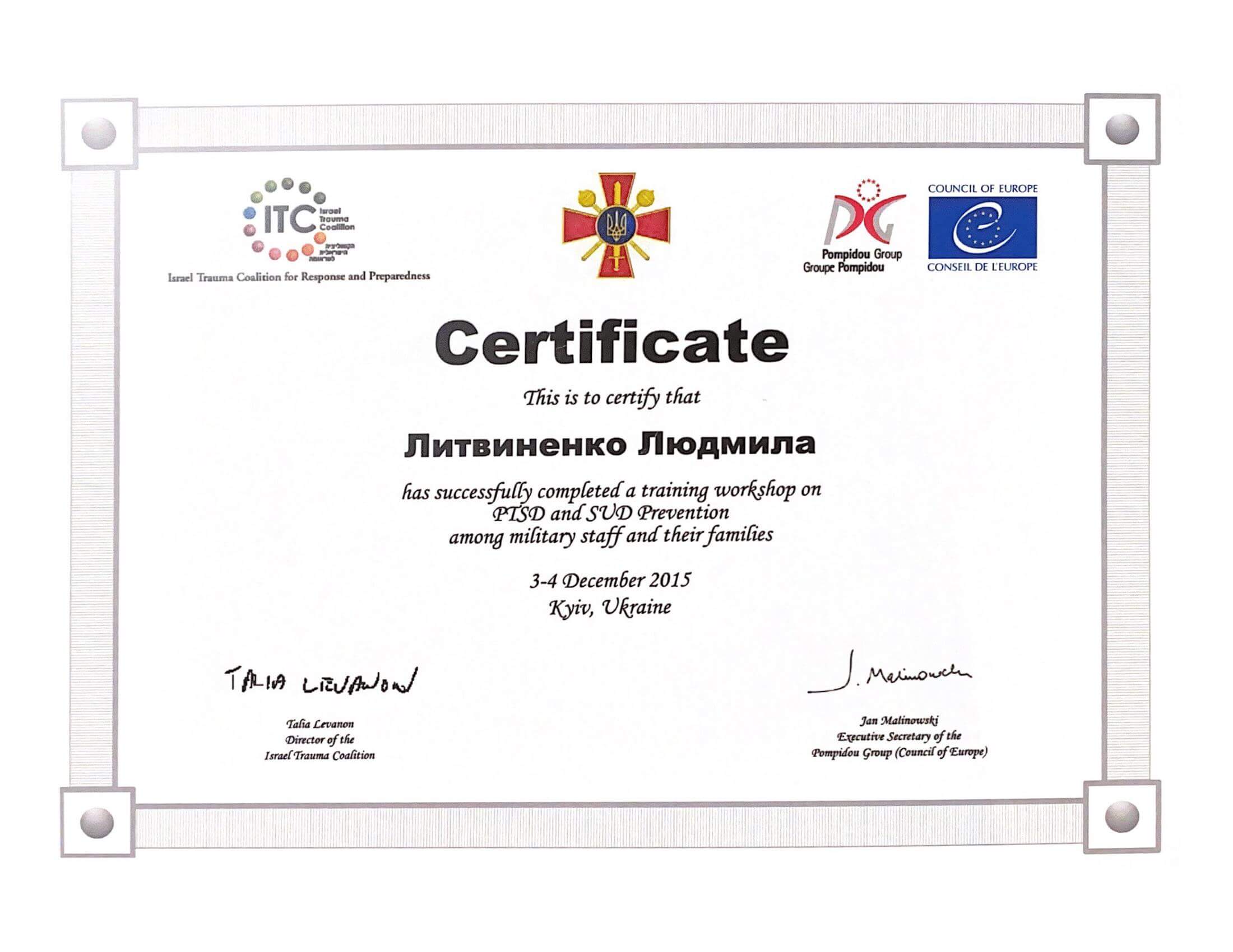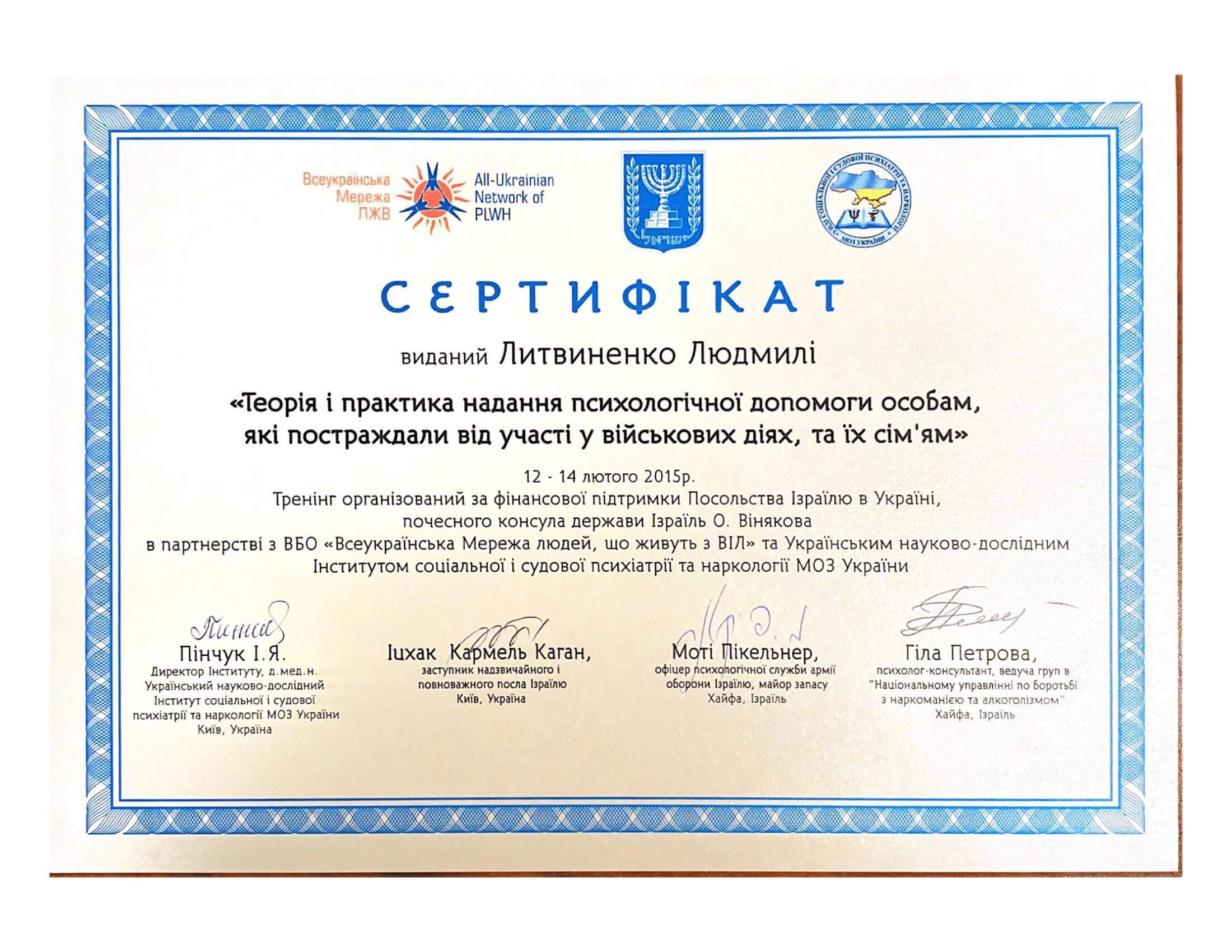 Міжнародний проект «Підтримка профілактики ВІЛ/СПІД, лікування та догляд». Школа надання послуг: основи супервізії для персоналу, який надає допомогу хоспісній хворим. Тренер, супервізор.