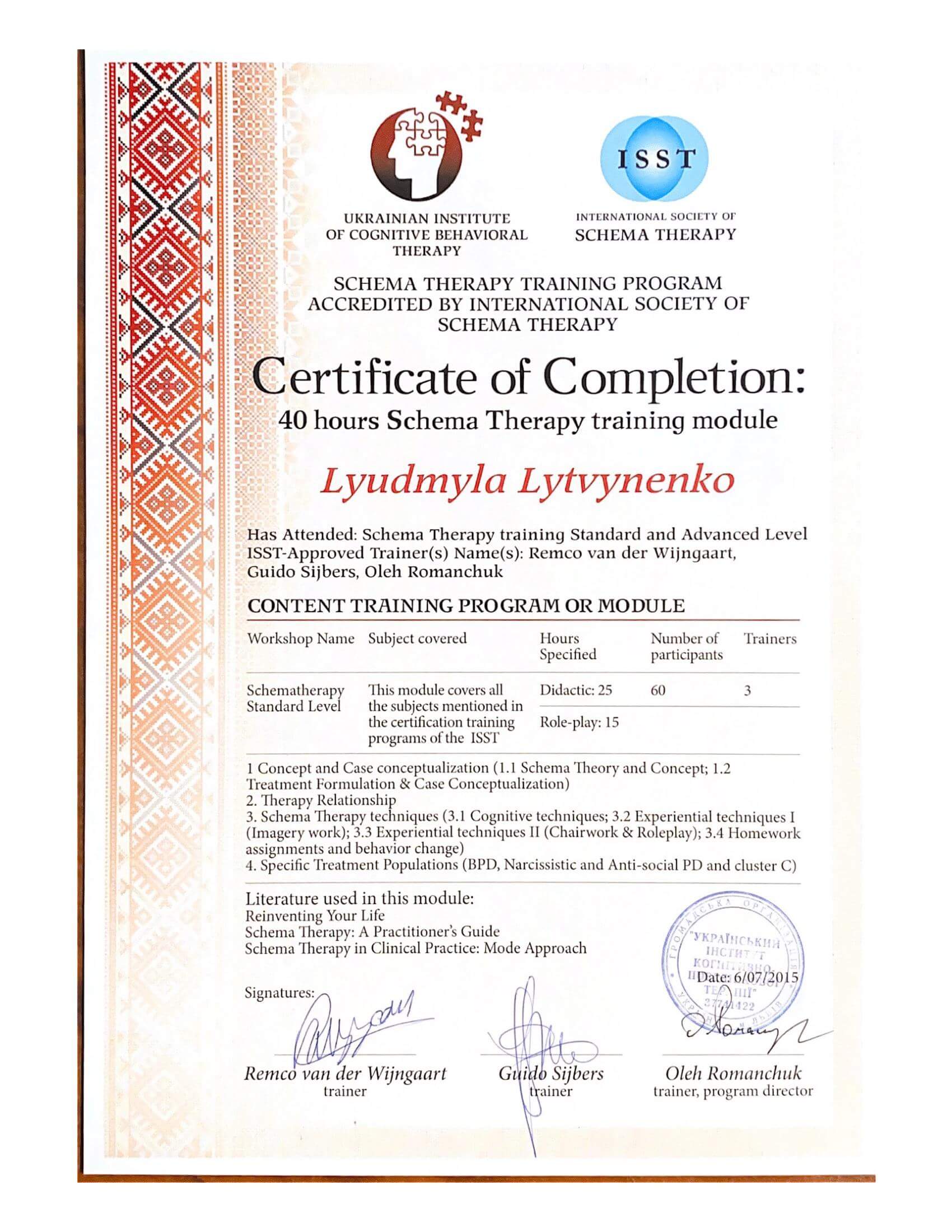 Маю розроблені авторські програми підготовки з питань екстренної психологічної допомоги; авторські семинари та тренінги: "Гроші", "Сімейна скриня", "Психосоматика", "Жіноче щастя", "Робота з масками", "Багатоголосся сексуальності", "Почуття провини", "Травма та ї наслідки" та ін.