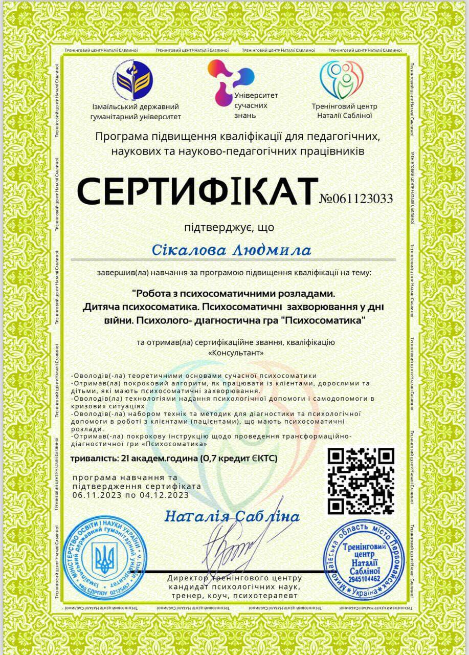 Теорія і практика роботи з психосоматикою 2023р.
