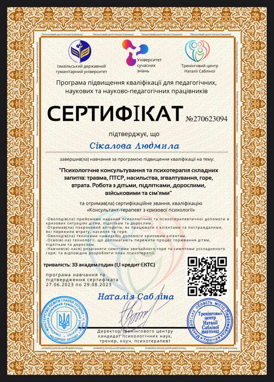 Сертифікати: