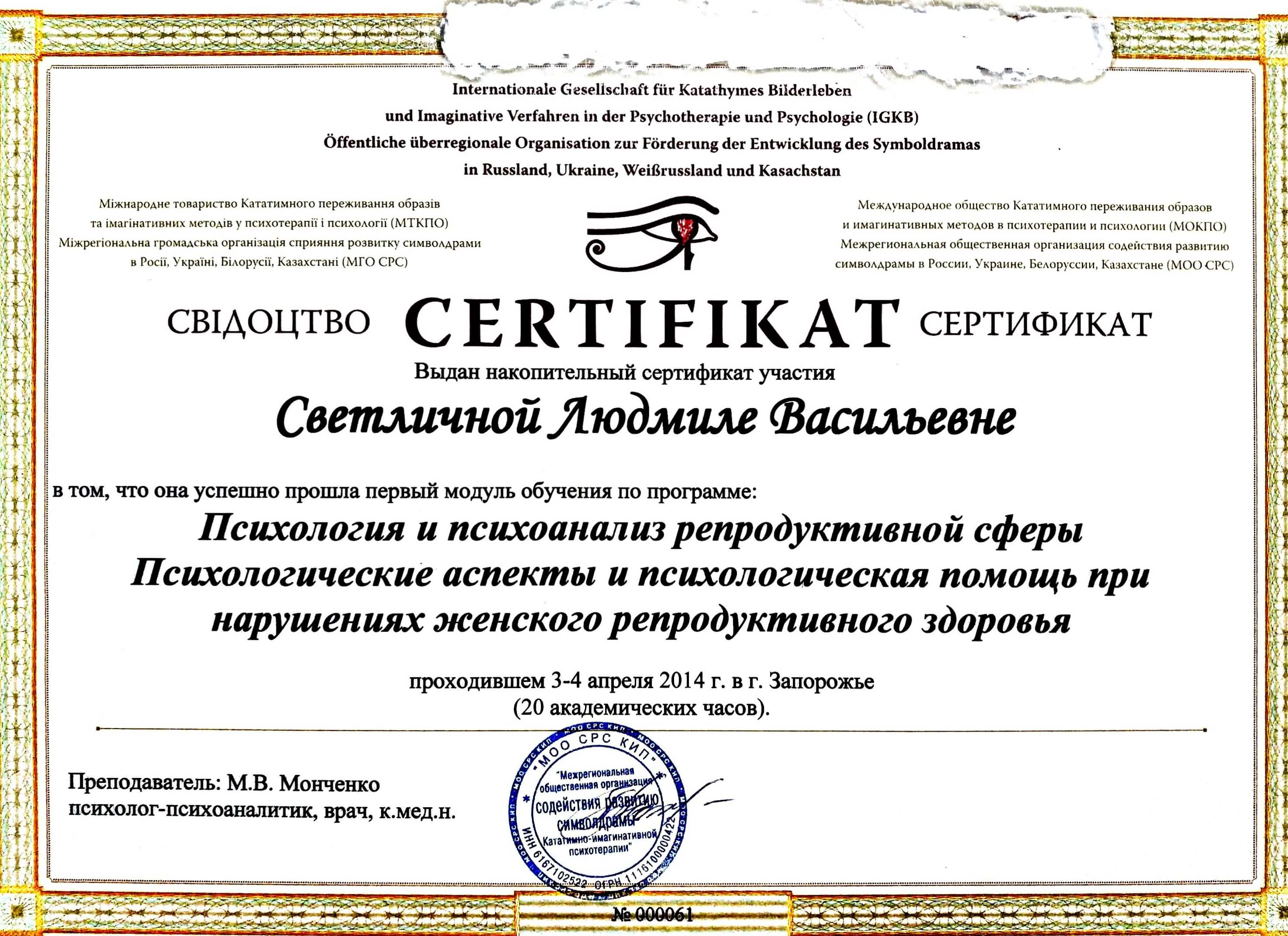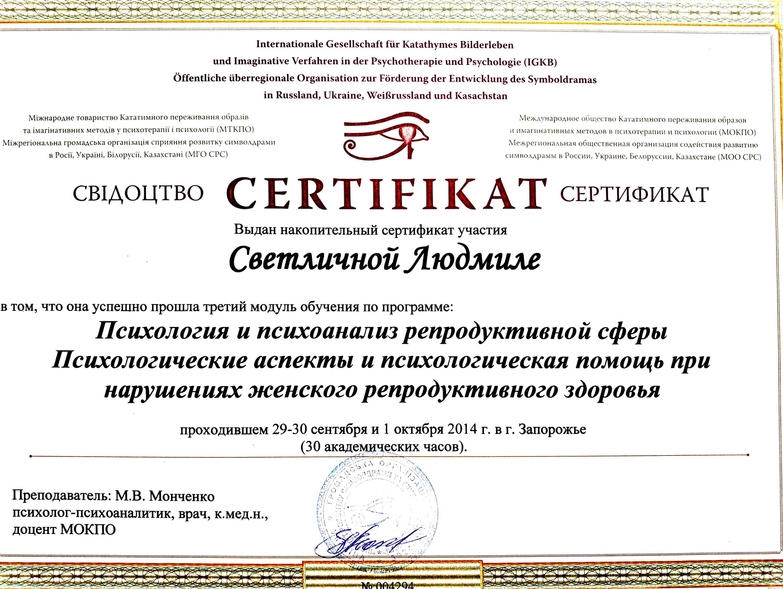 Психологія та психоаналіз репродуктивної сфери. Психологічні аспекти та психологічна допомога при порушеннях жіночого репродуктивного здоров'я – 50 годин та інші