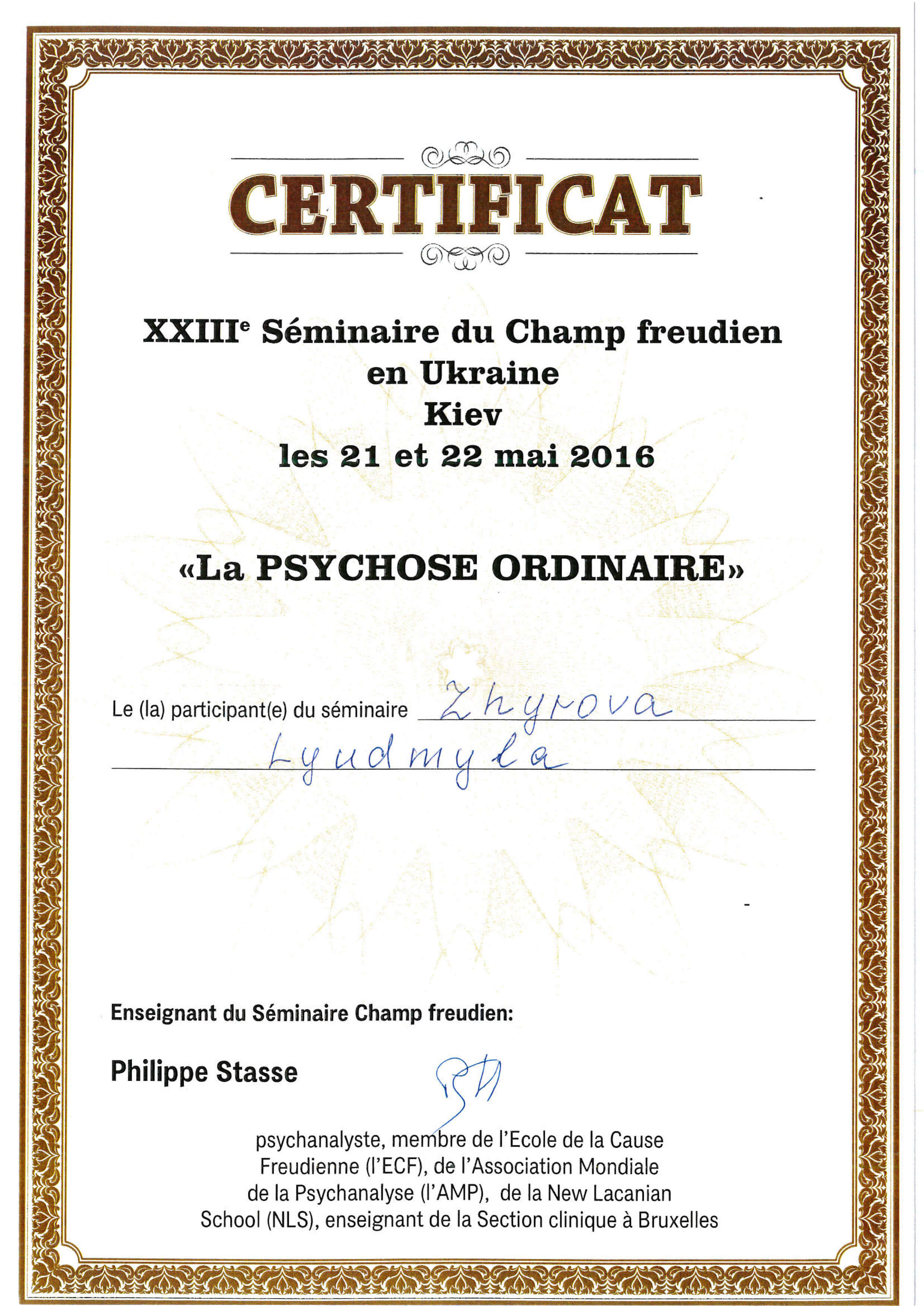 XXIIIe Séminaire du Champ freudien en Ukraine «La PSYCHOSE ORDINAIRE»