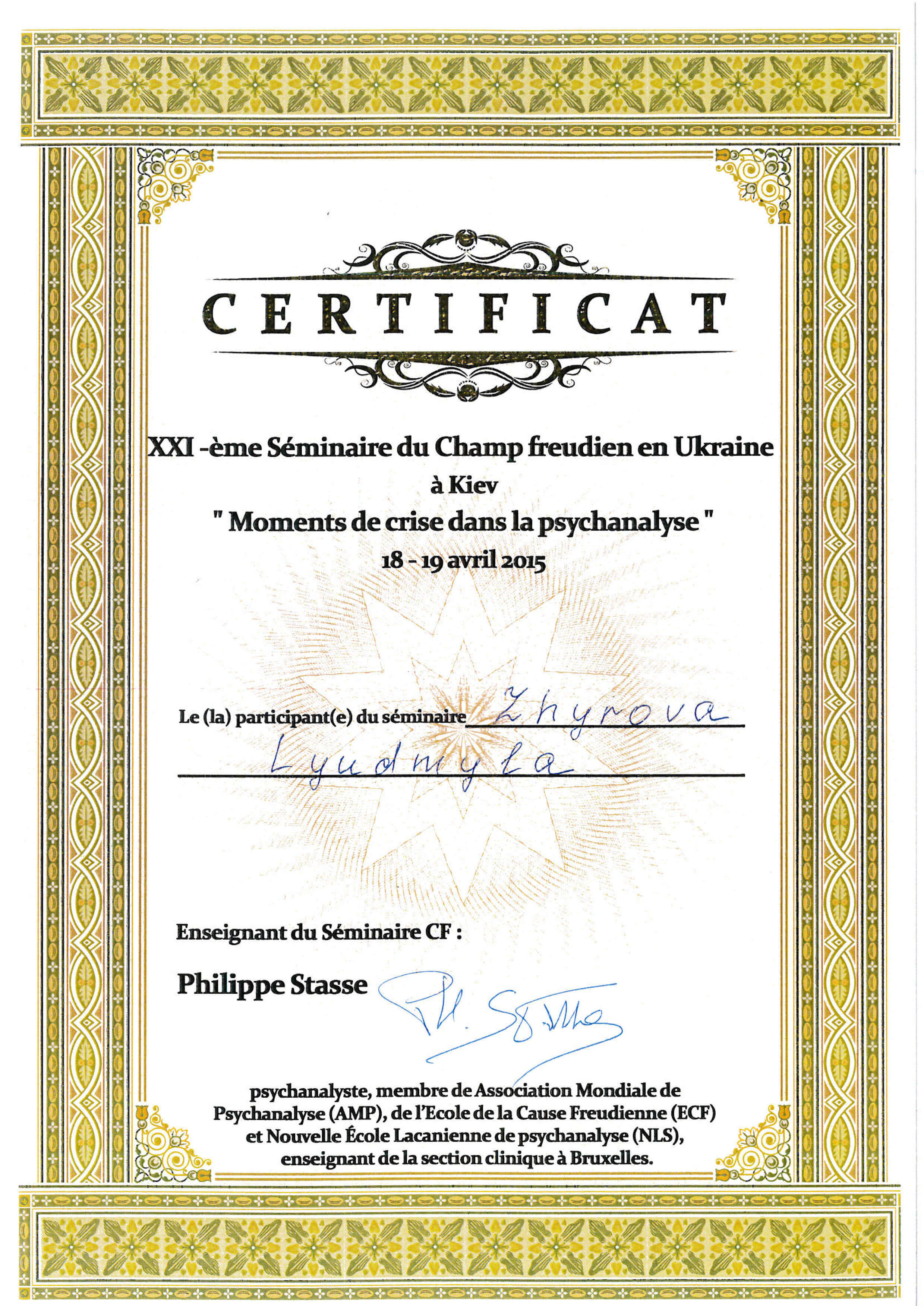 XXI -ème Séminaire du Champ freudien en Ukraine à Kiev "Moments de crise dans la psychanalyse"