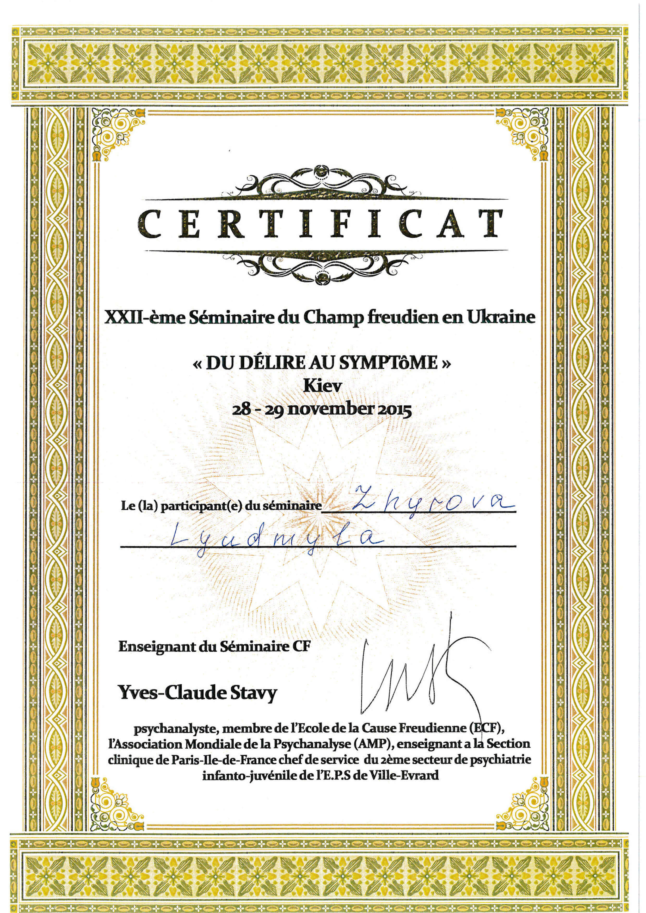 XXII-ème Séminaire du Champ freudien en Ukraine « DU DÉLIRE AU SYMPTÔME »