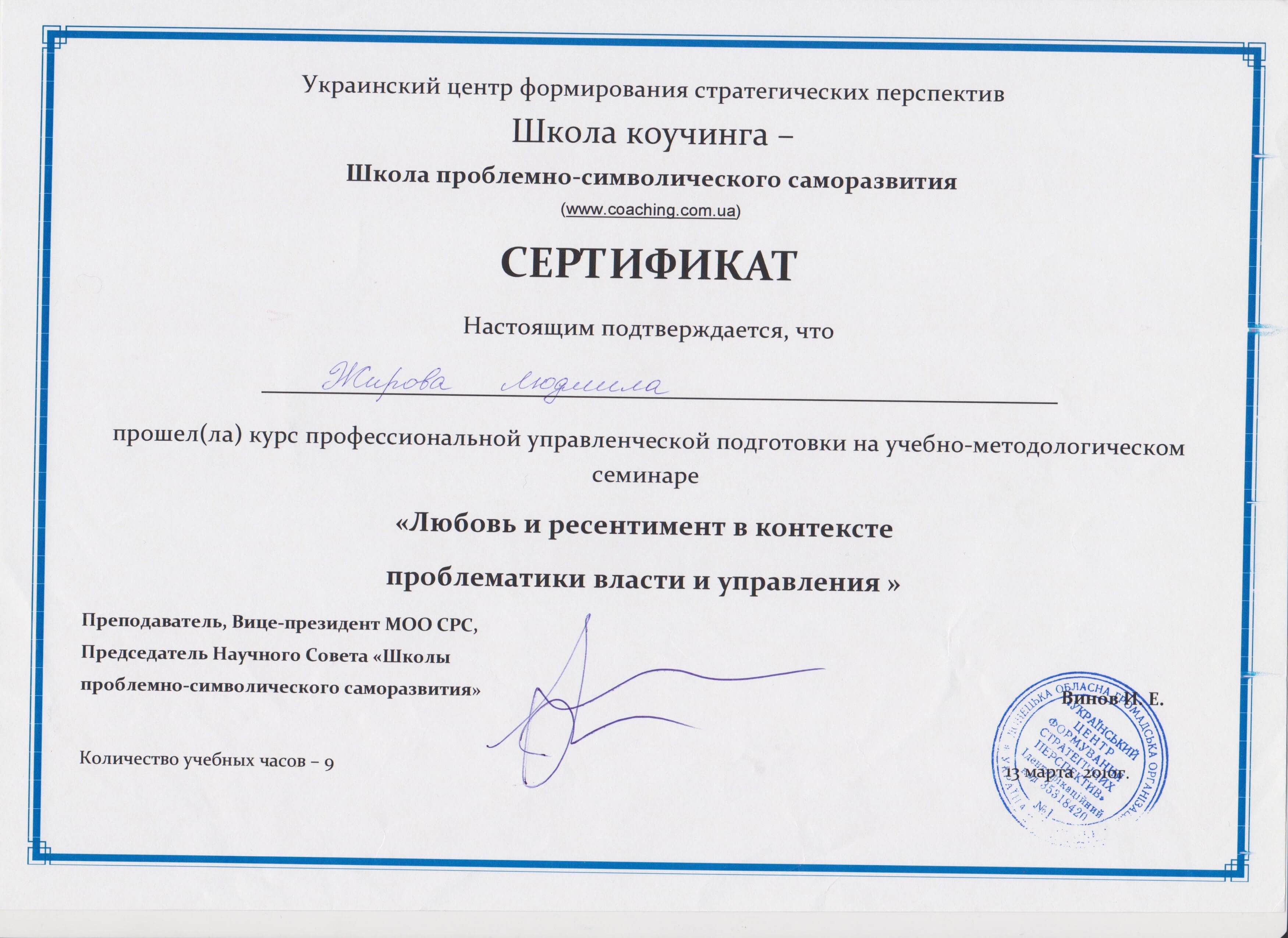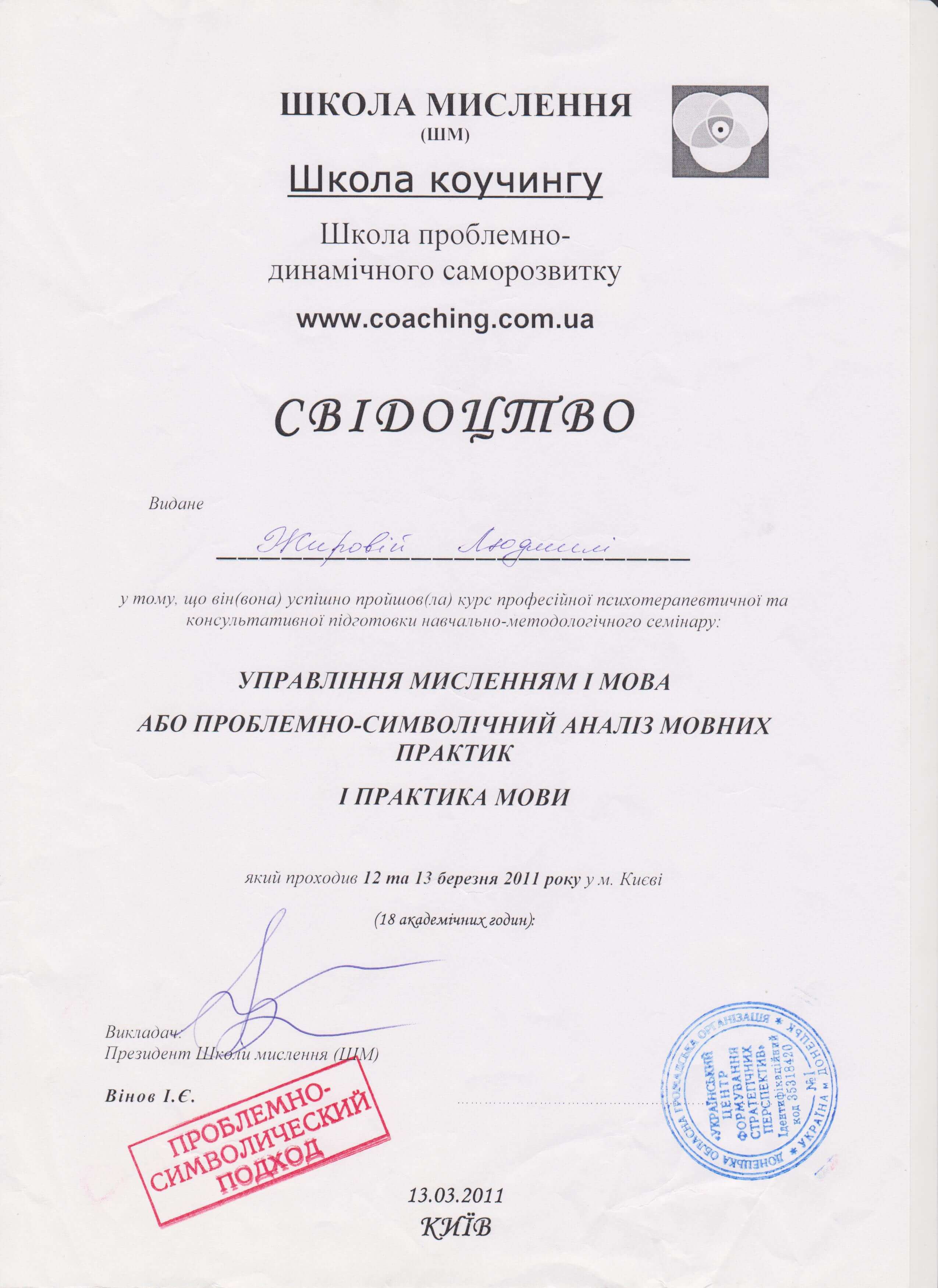 Украинский центр формирования стратегических перспектив, Школа коучинга - Школа проблемно-символического саморазвития