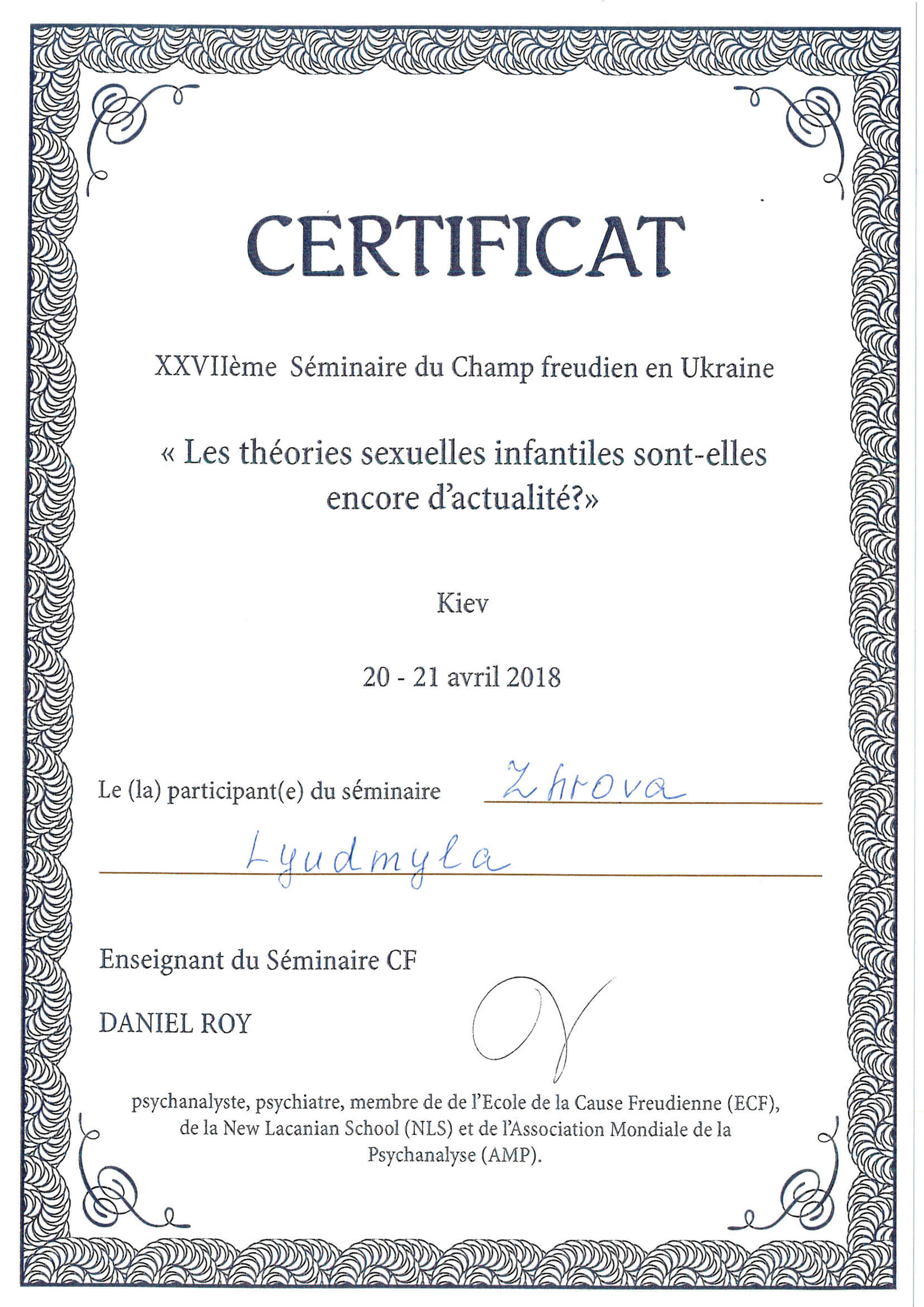 XXVIIème Séminaire du Champ freudien en Ukraine « Les théories sexuelles infantiles sont-elles encore d'actualité? »