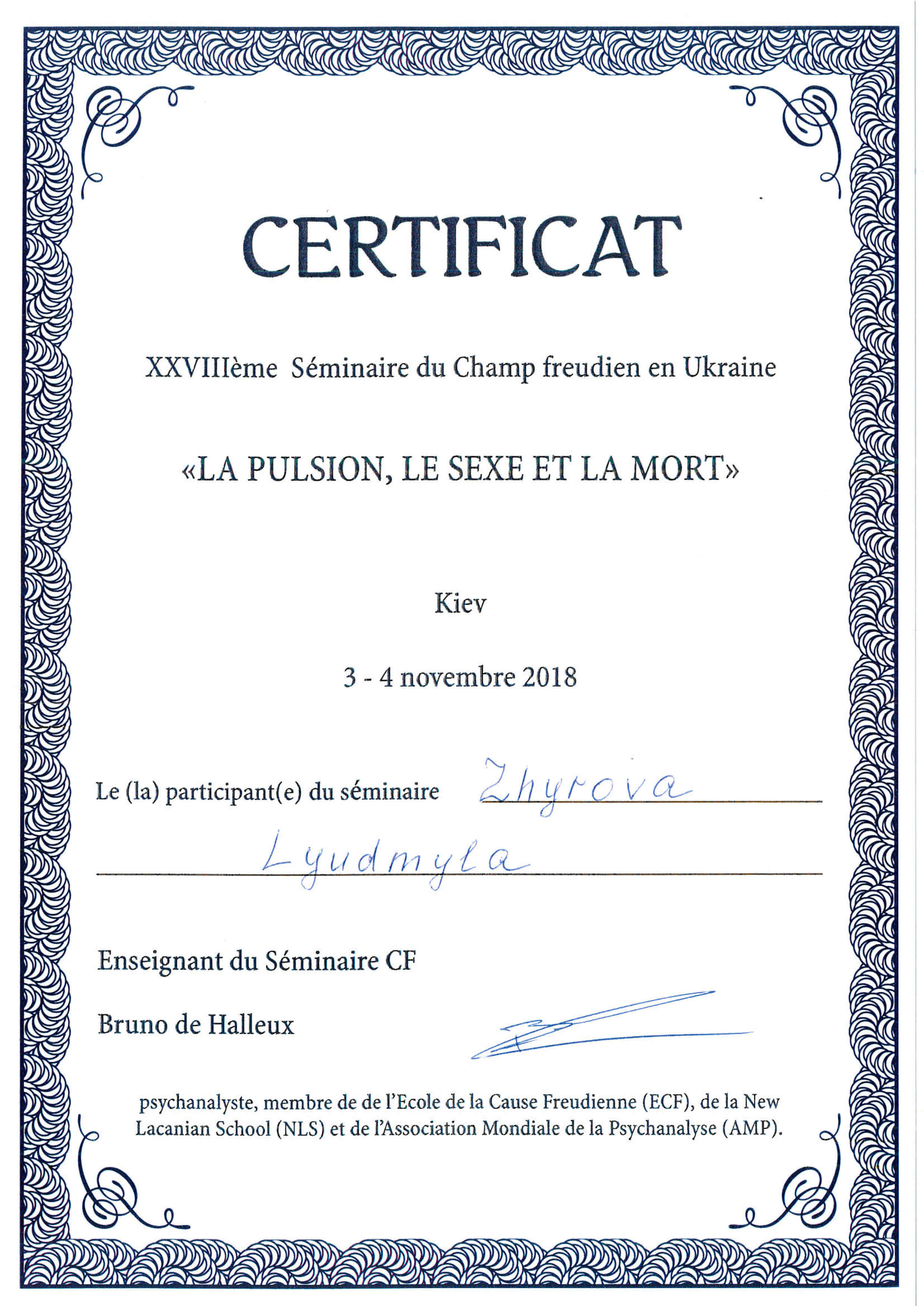 XXVIIIème Séminaire du Champ freudien en Ukraine «LA PULSION, LE SEXE ET LA MORT»