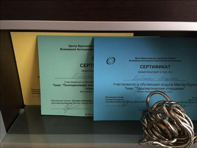 На даний момент завершую навчання (закінчення в 2021 р.) Майстер курс позитивної психотерапії