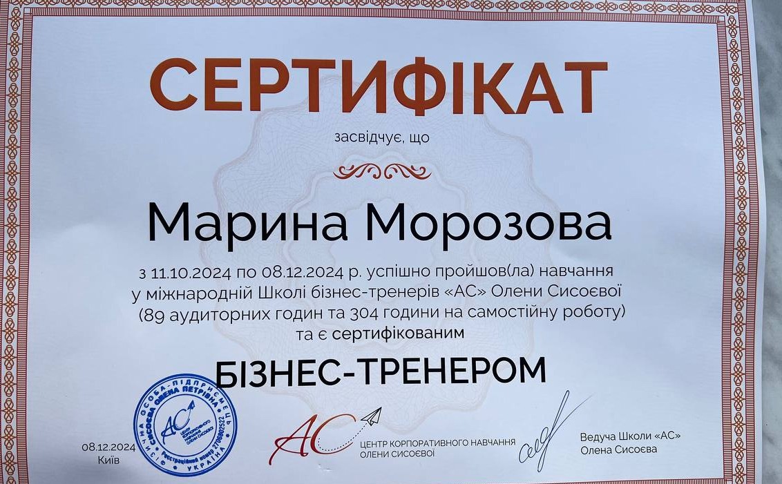 - Бізнес-тренер -школа тренерів "АС" Олени Сисоєвої