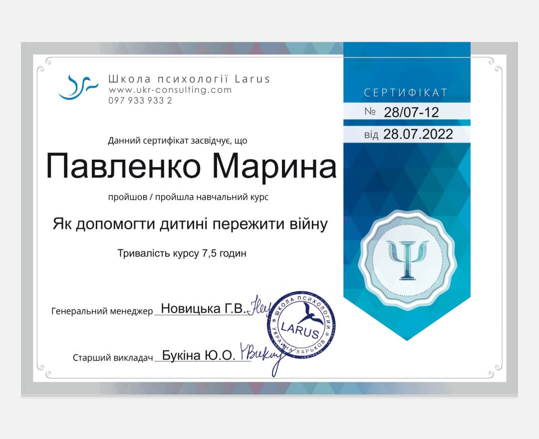 4.Школа психології "Larus". Курс "Як допомогти дитині пережити війну"