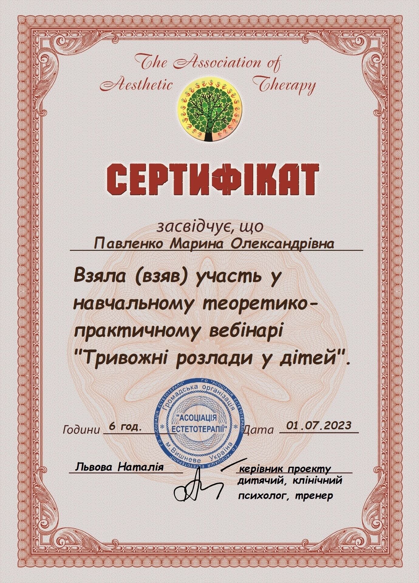 5. "Тривожні розлади у дітей" Н.Львова, "Асоціація естетотерапії"