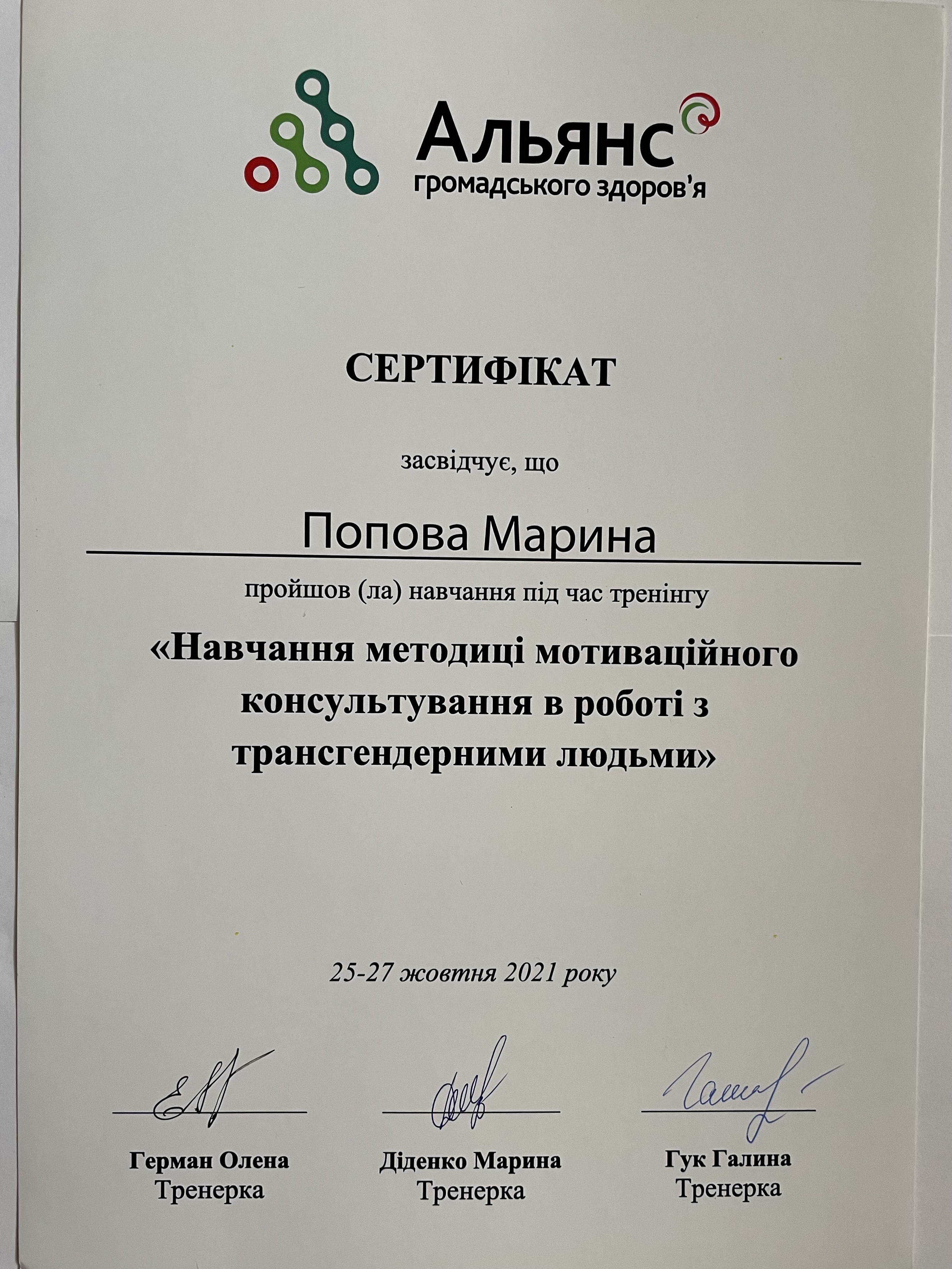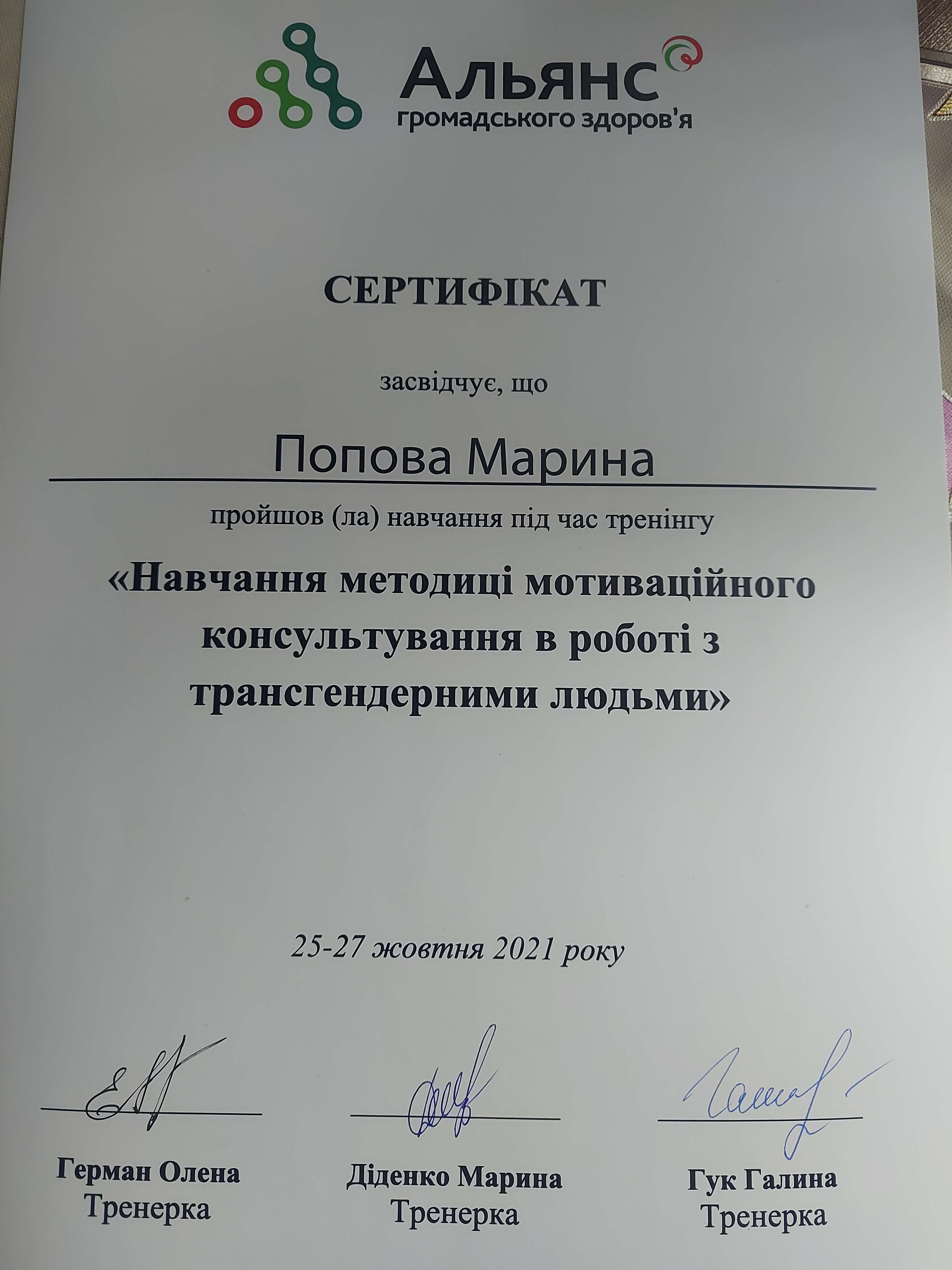 Навчання методиці мотиваційного консультування в роботі з трансгендерними людьми