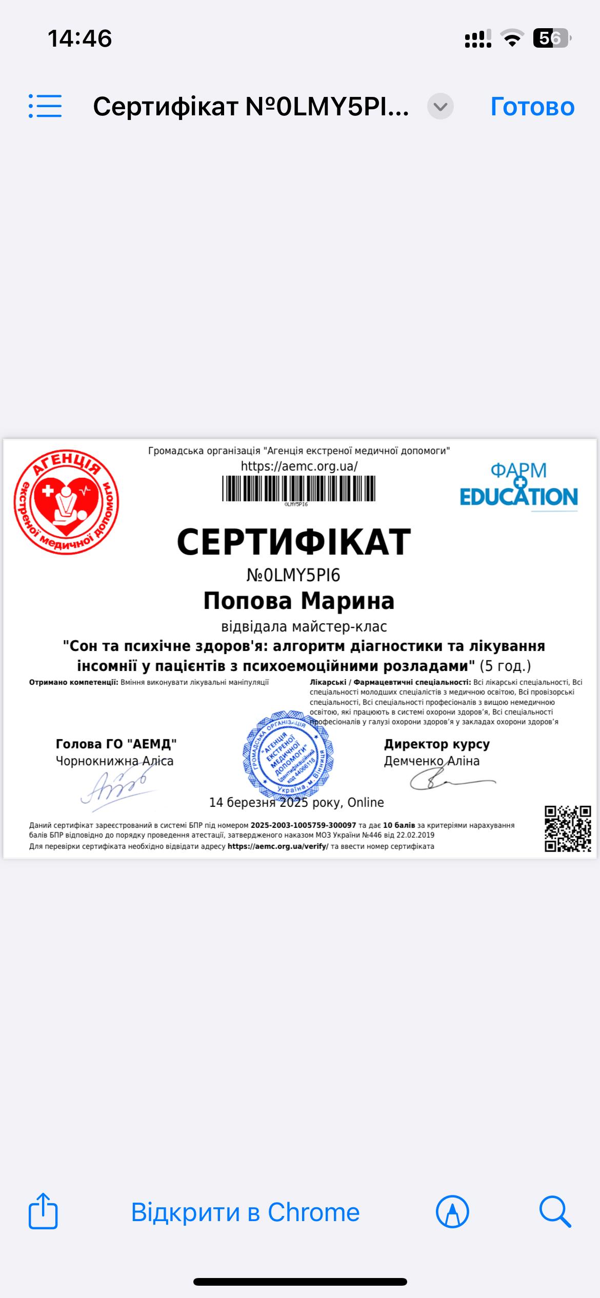 2015 - Підвищення професійної кваліфікації «Оцінка поведінкового здоров'я та психологічне відновлення людей, які пережили травматичний стрес.
