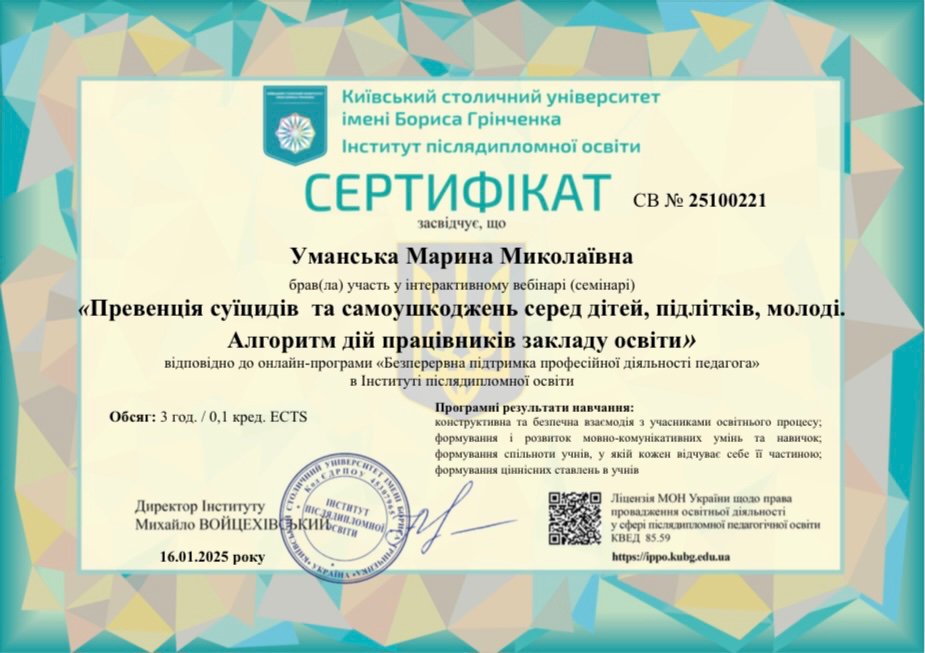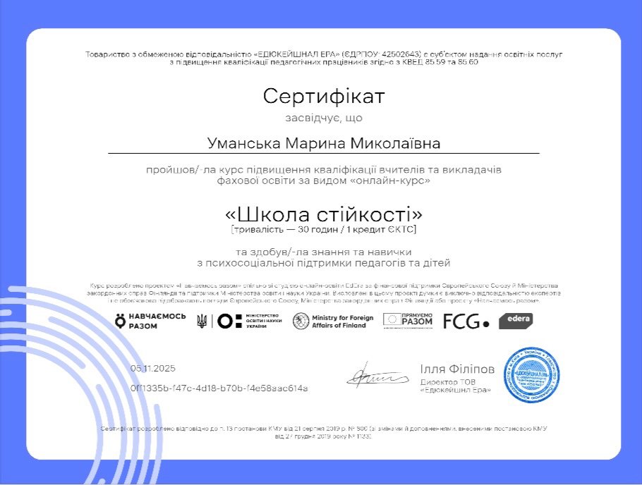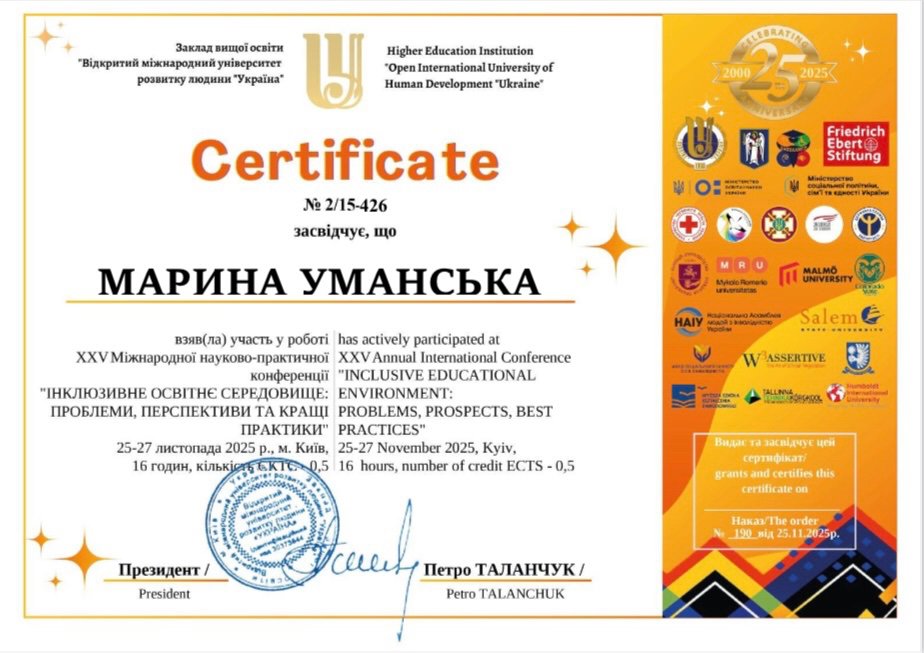 Сертифікати: