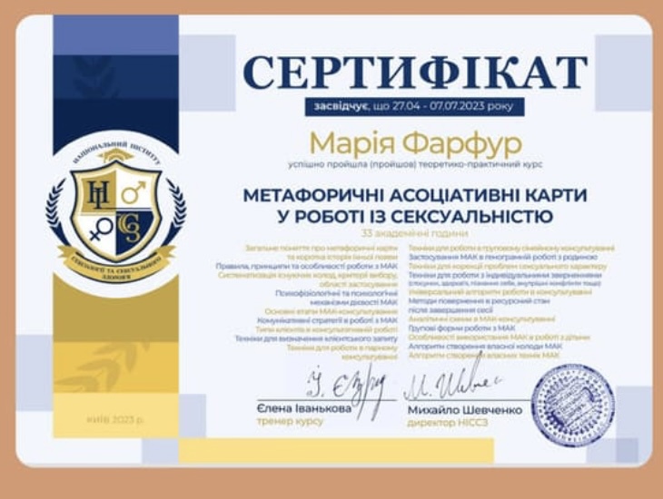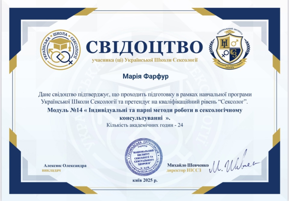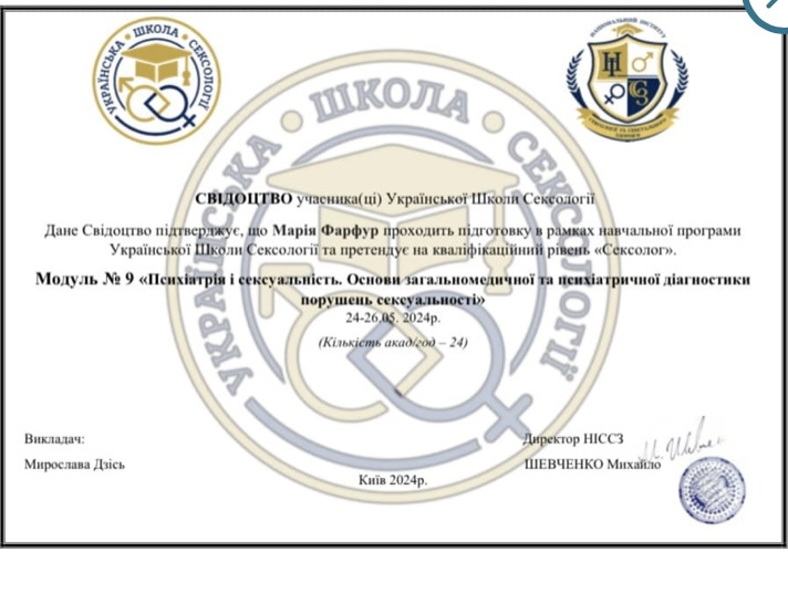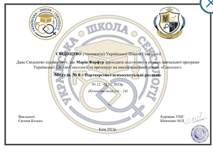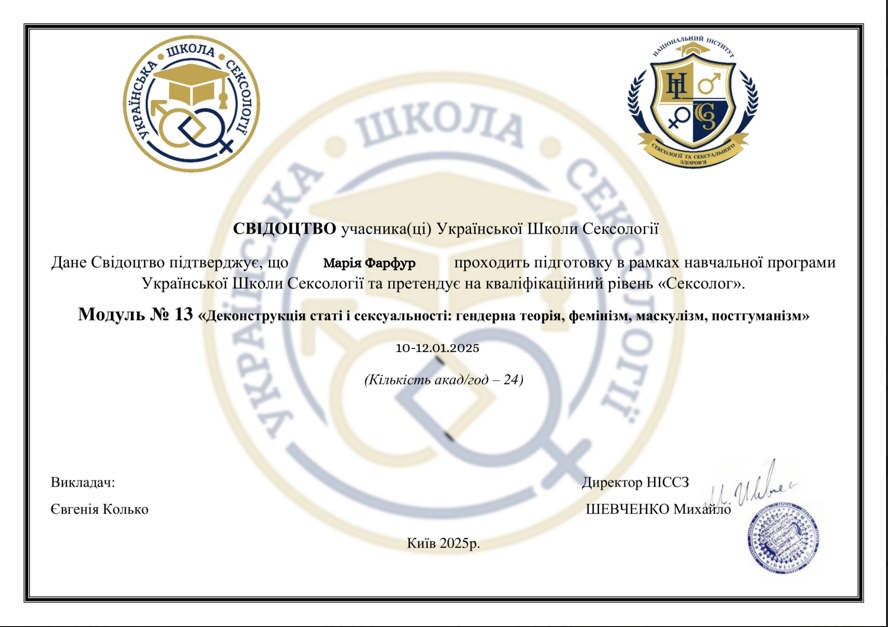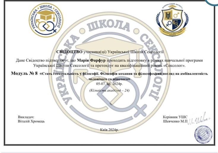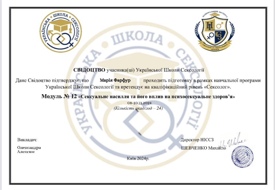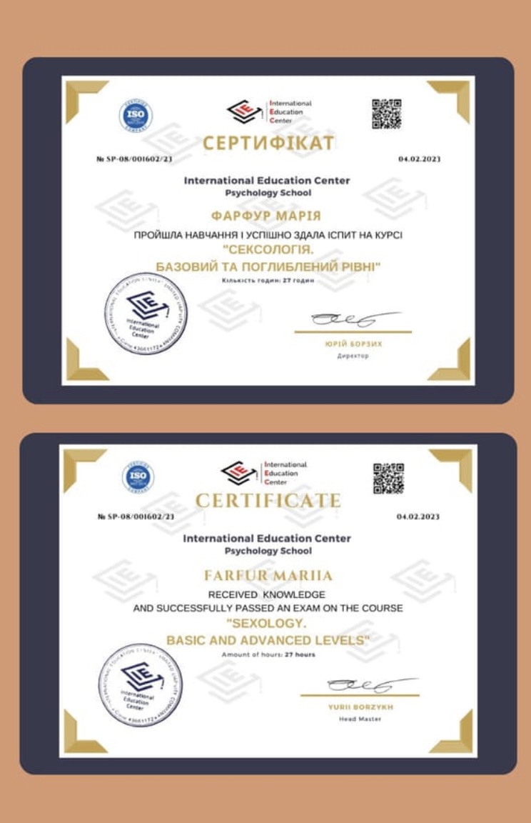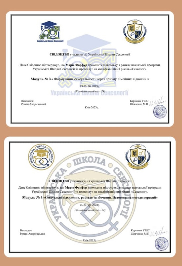 2. За три роки пройшла більше 10 підвищень кваліфікації напрямку «Сексологія».