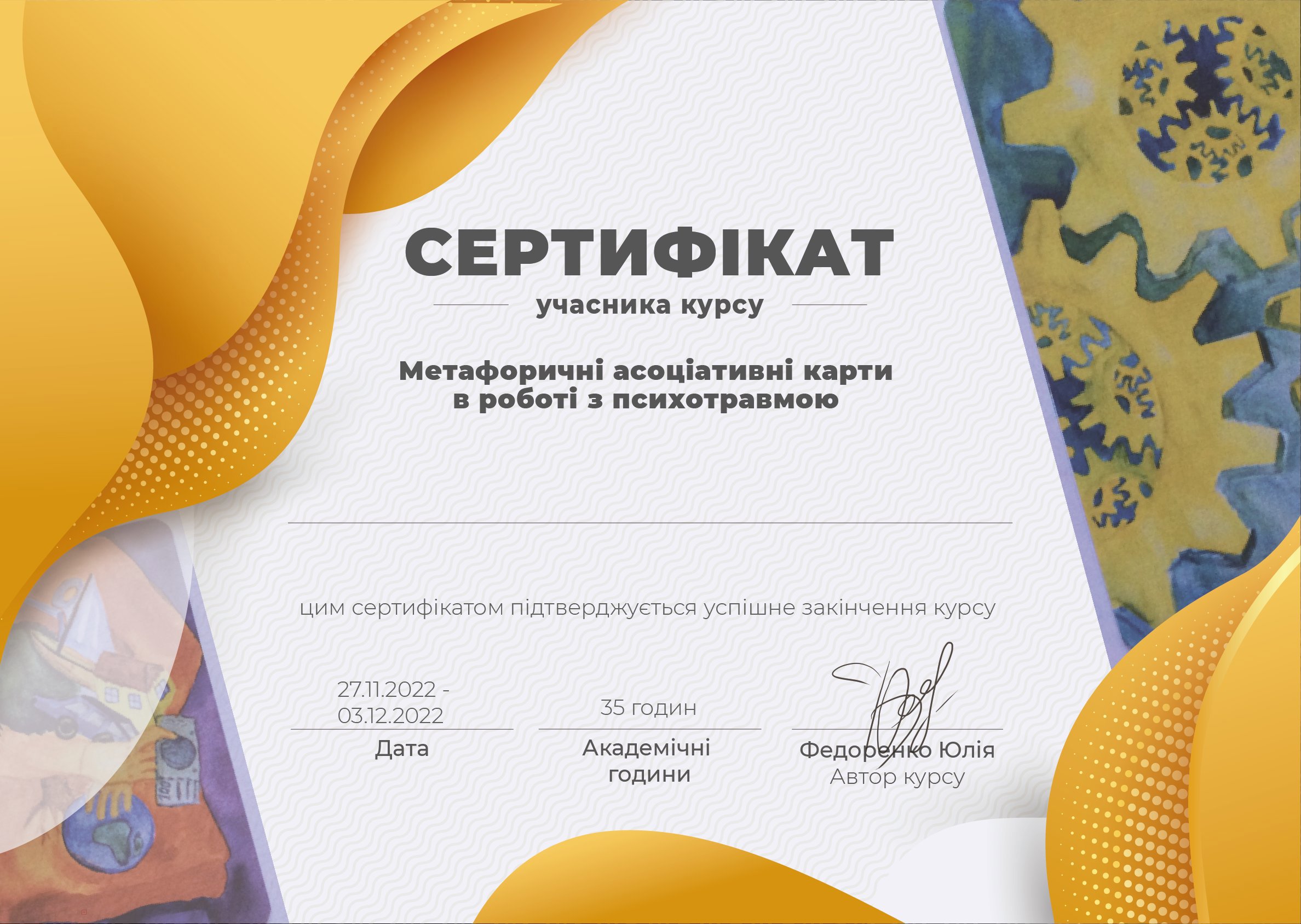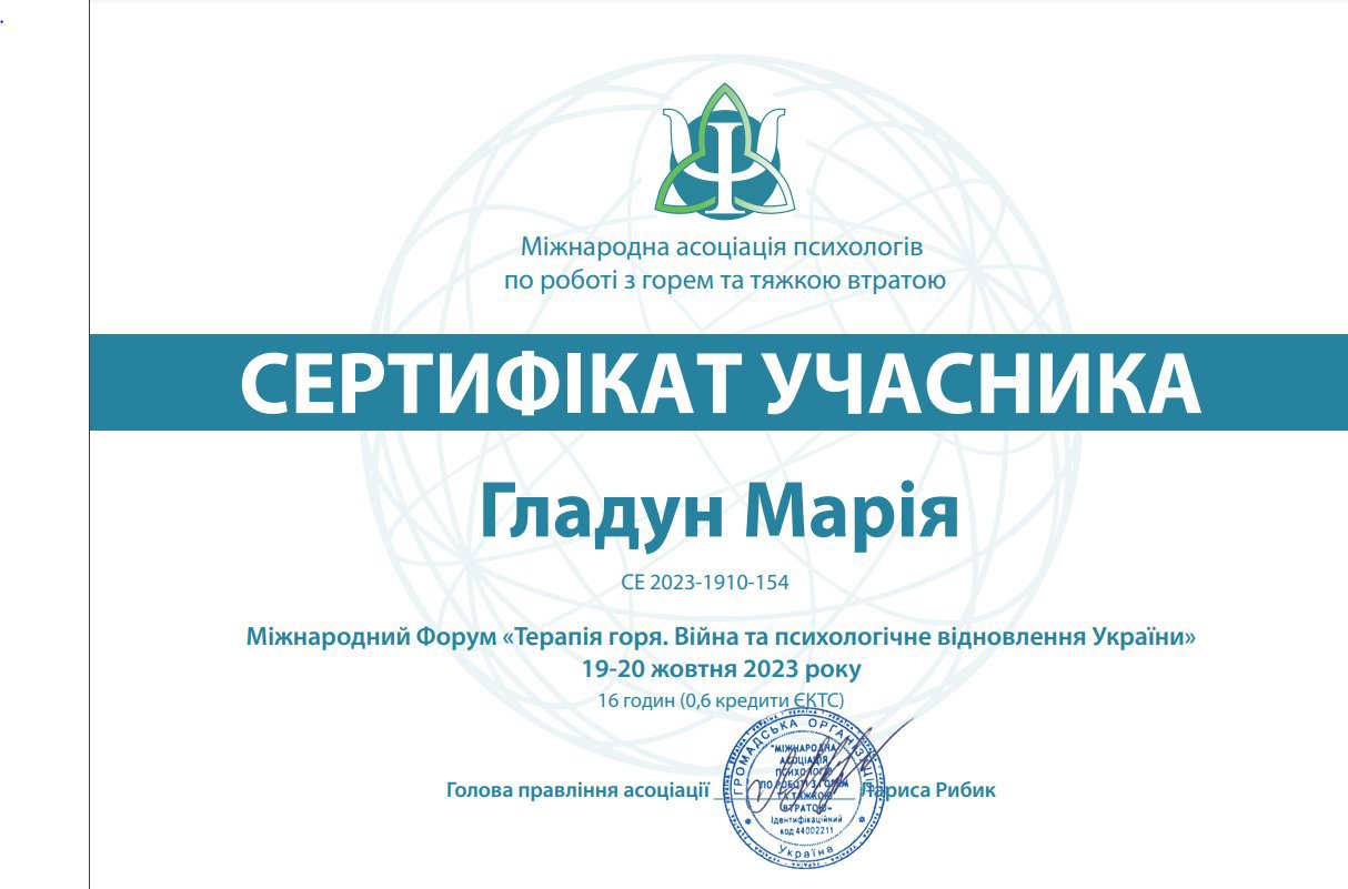 Практичний курс "Я – психотерапевт" у к.п.н. Юлії Залізнякової (ЗНУ).