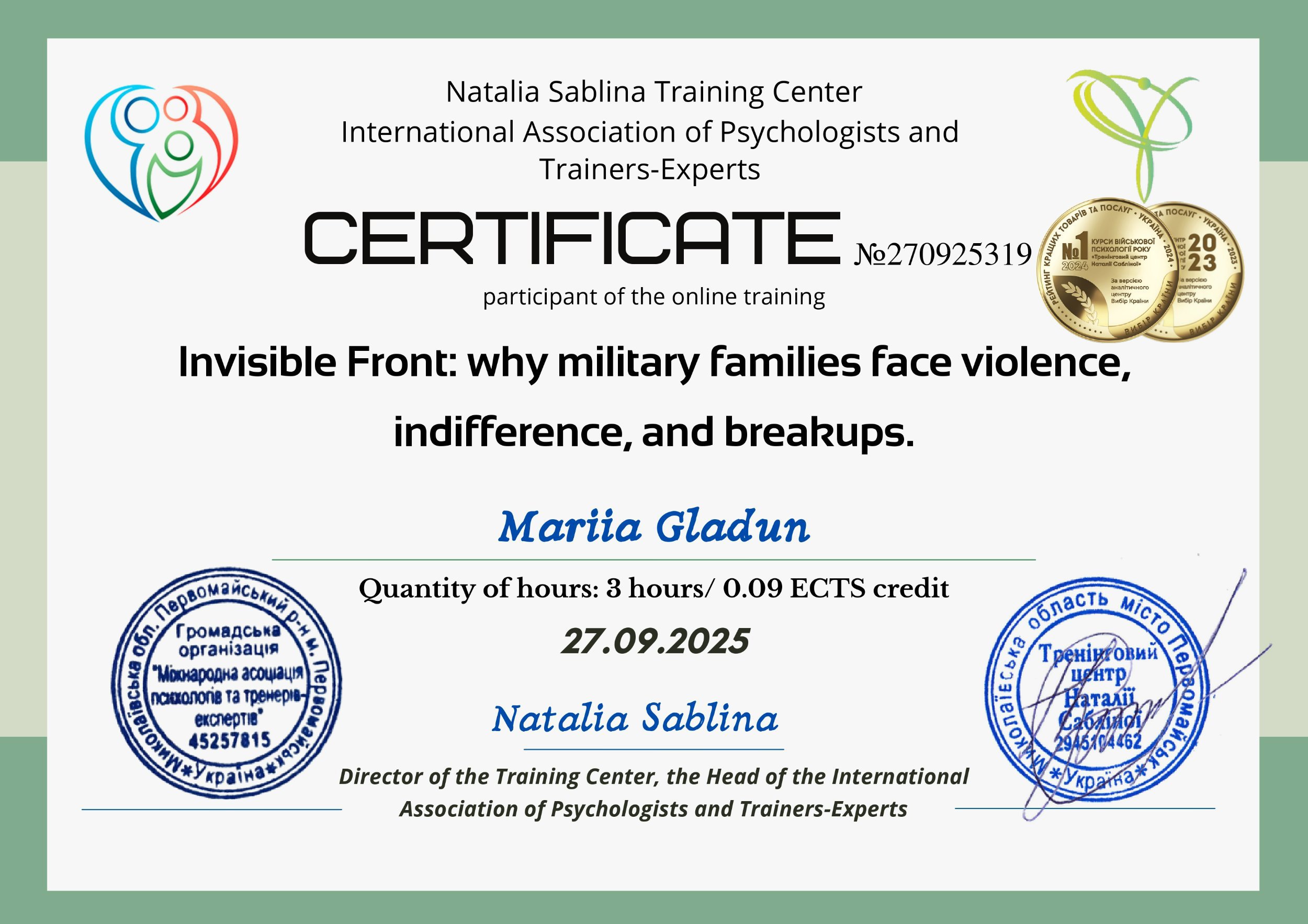 Сертифікати: