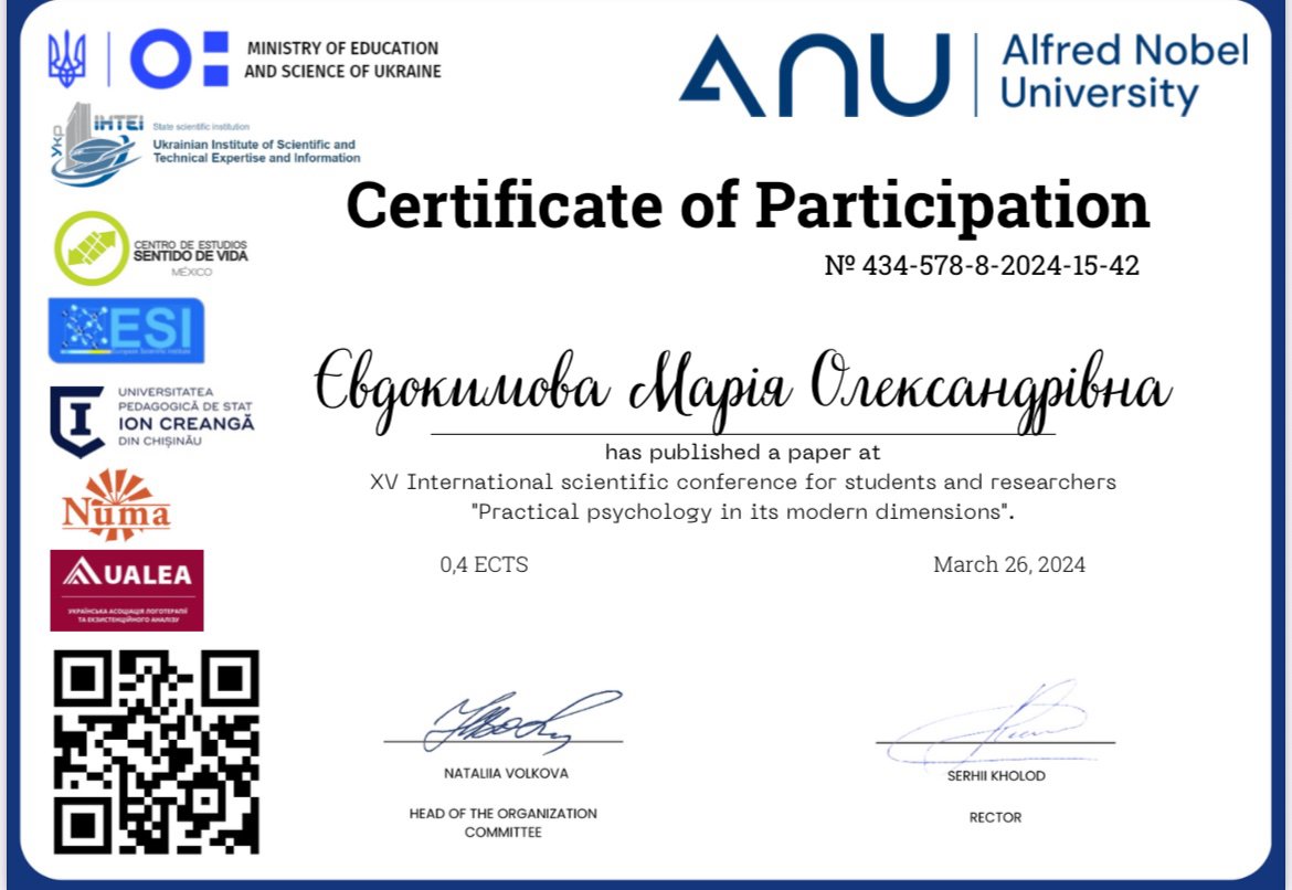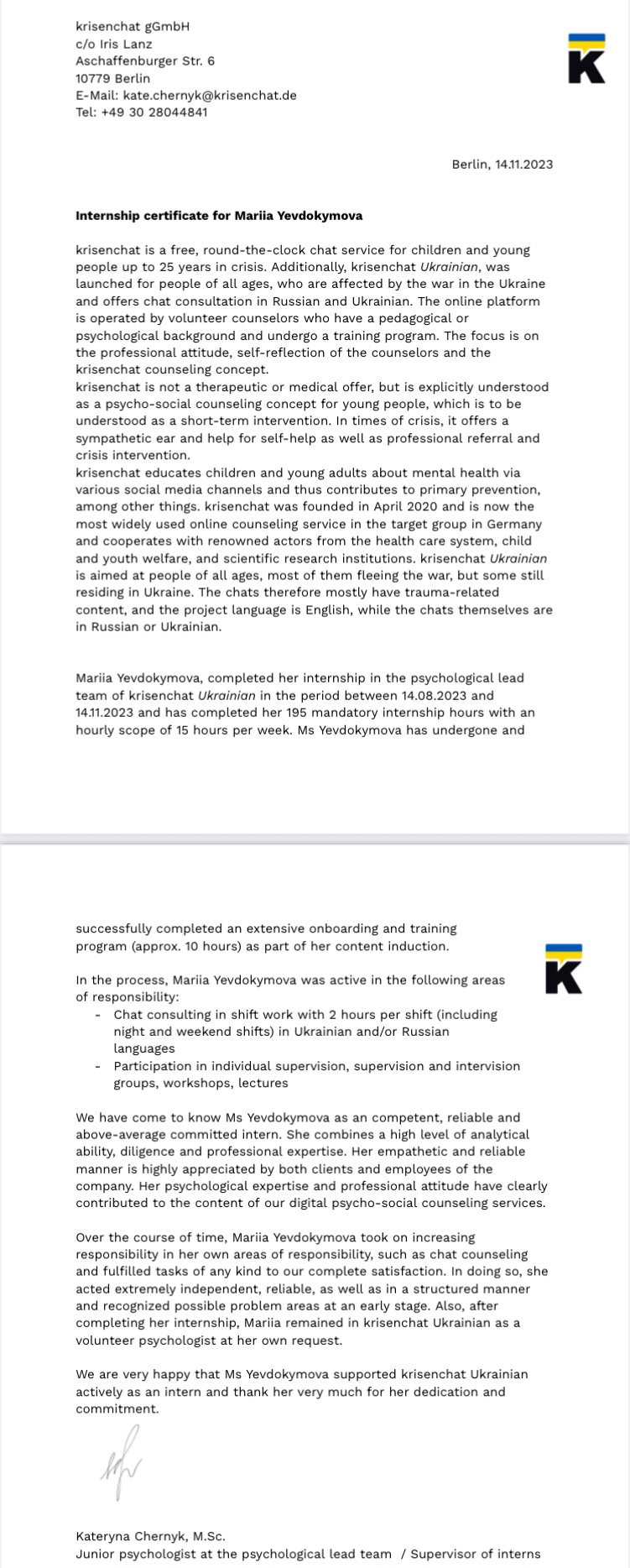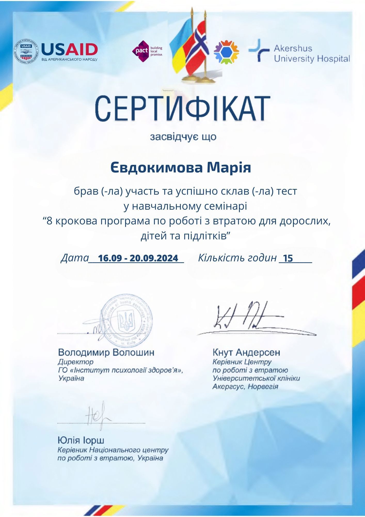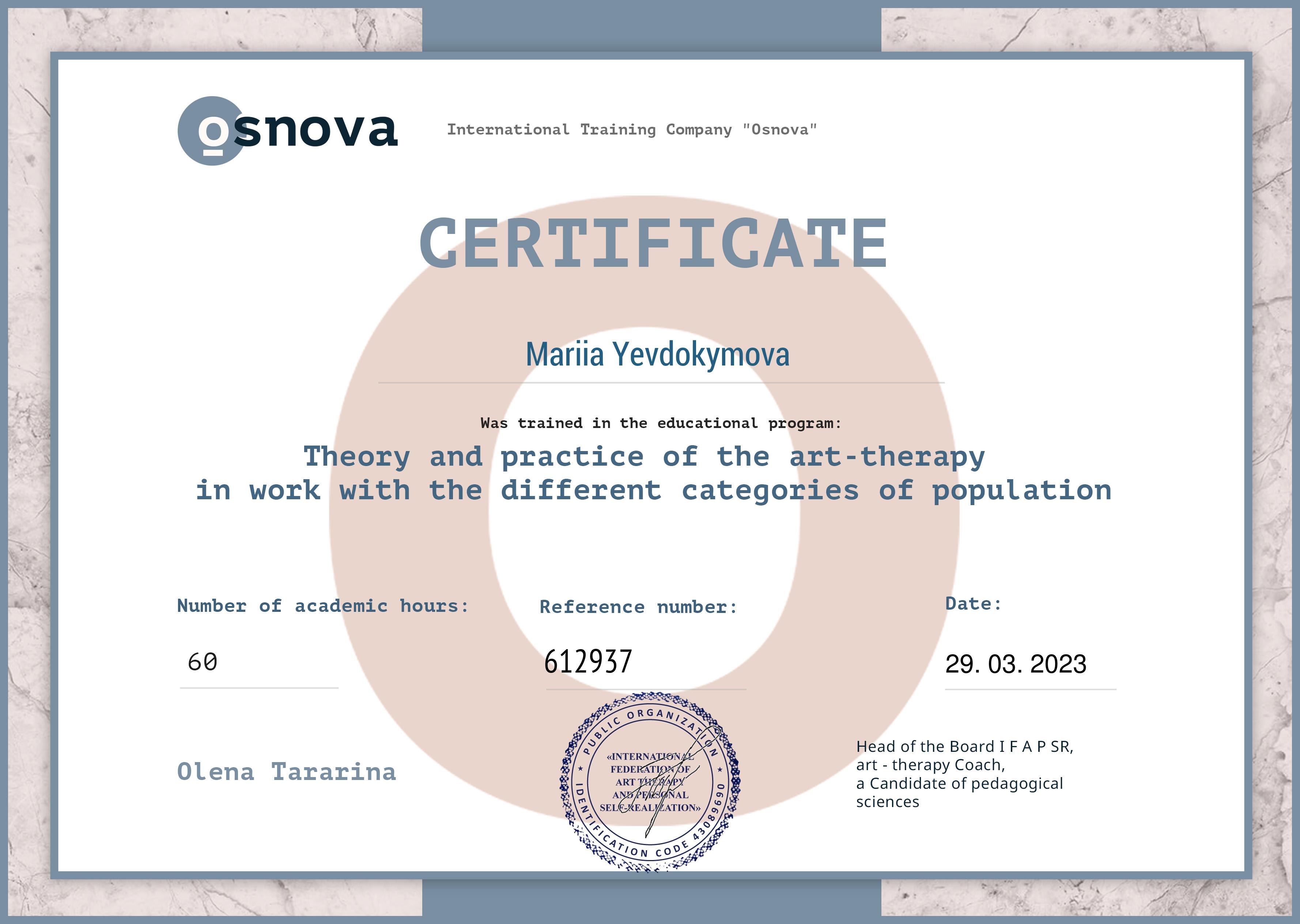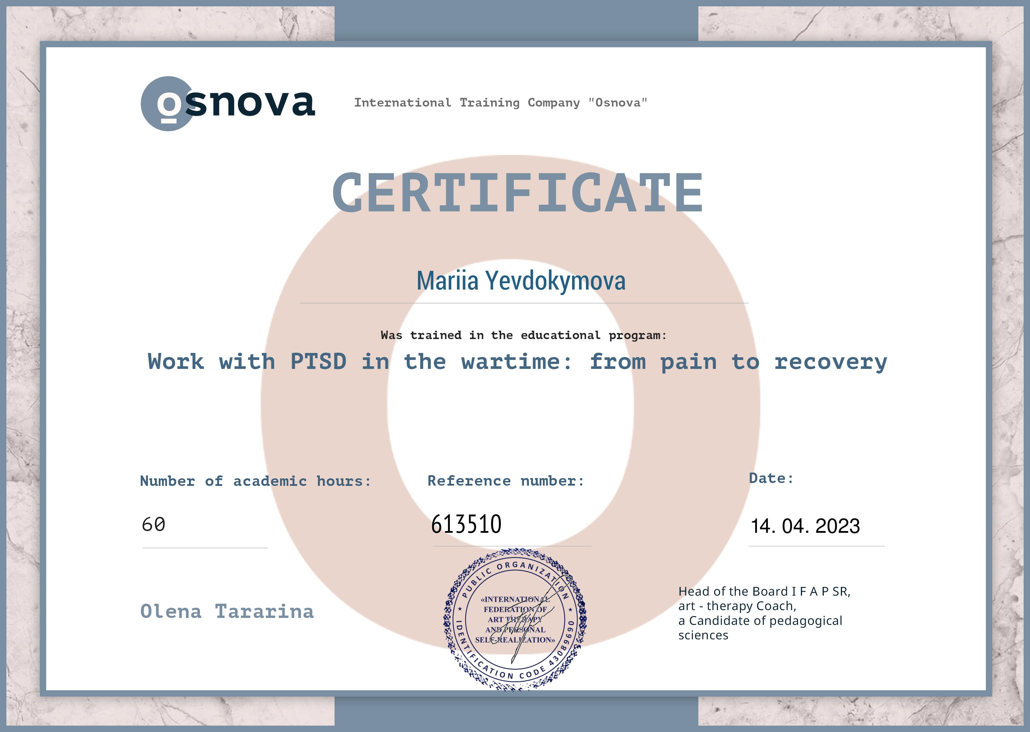 Мене звати Марія, у минулому я була професійною спортсменкою, зараз я психологиня і є дещо що обʼєднує моє минуле і теперішнє. Це віддача. Коли я була на змаганнях, я концентрувалася тільки на цьому моменті, тож ви можете бути впевненими, що на консультаціях я так само віддано концентруюся на нашій взаємодії. Я кризова психологиня. Це означає що найчастіші запити до мене - це стрес, втома, вигорання, панічні атаки, тривожність і тд. Також доводилося працювати з суїцидальною поведінкою і селф-хармом.