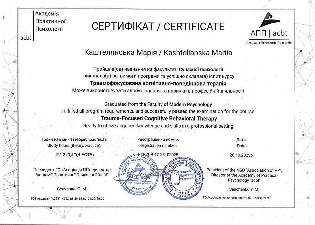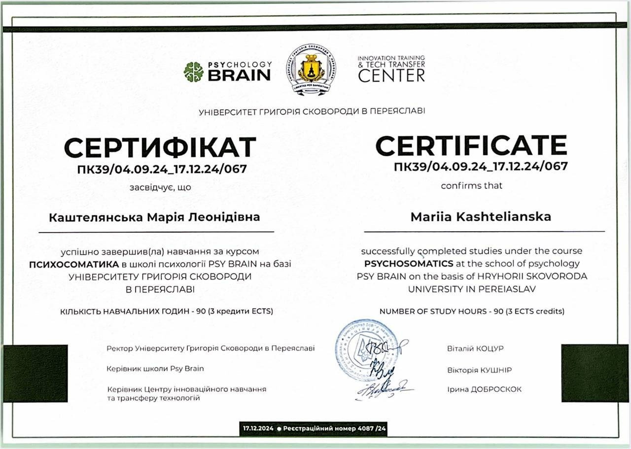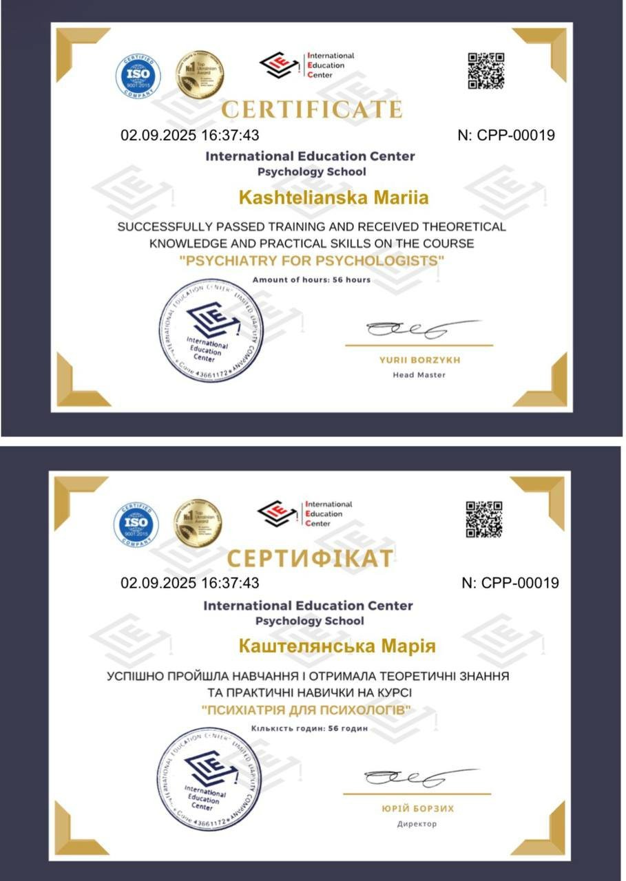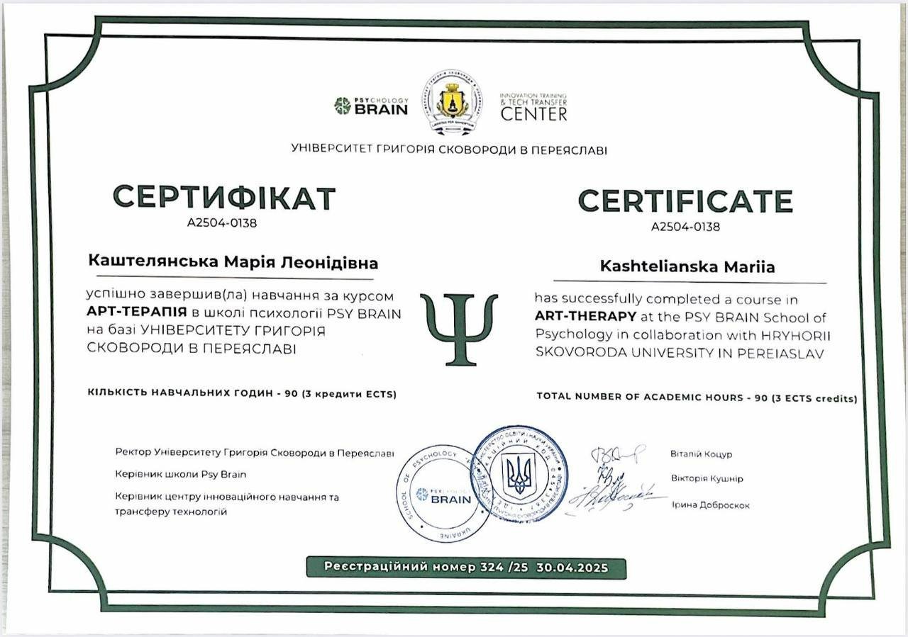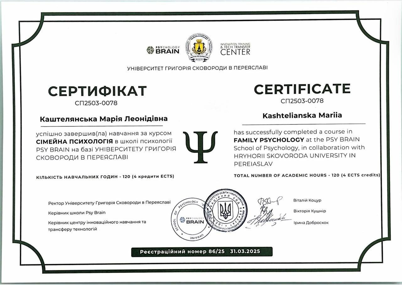 Я магістр психології, член Національної психологічної асоціації України.