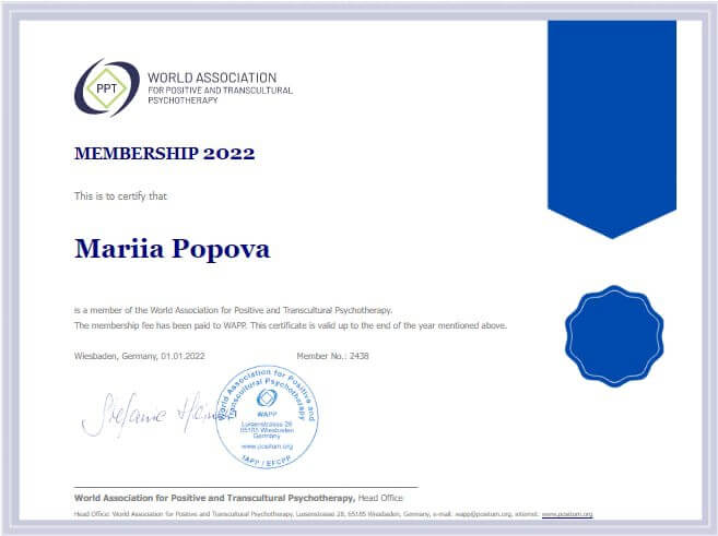 2022- цей час - майстер курс Позитивна психотерапія