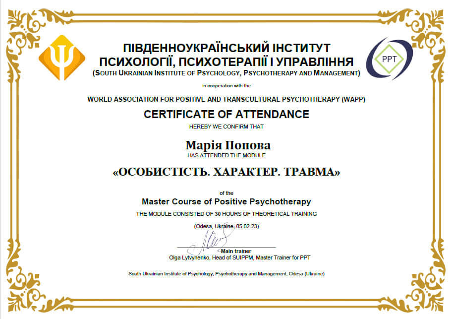 Master Course of Positive Psychotherapy, module «ОСОБИСТІСТЬ. ХАРАКТЕР. ТРАВМА»