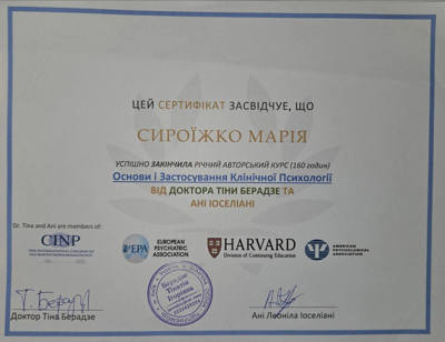Річний курс "Основи та застосування клінічної психології" доктора Тіни Берадзе (160 годин)