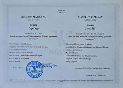 Досвід індивідуальної (4 роки) та групової терапії (2 роки) допоміг впоратись з розладом харчової поведінки, депресивним епізодом та підвищеною тривожністю. Прагну показати клієнтам що всі ці проблеми можна вирішити і нарешті насолоджуватись життям!