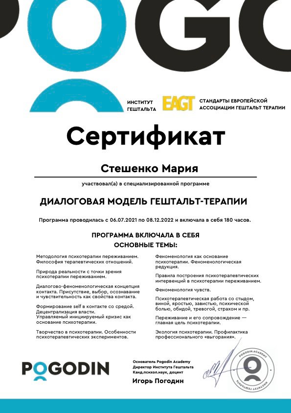 Навчання відповідно до стандартів EAGT (European Association for Gestalt Therapy)