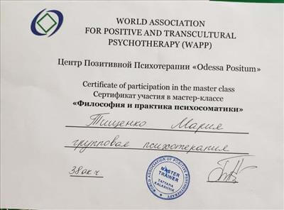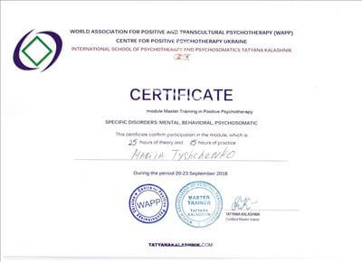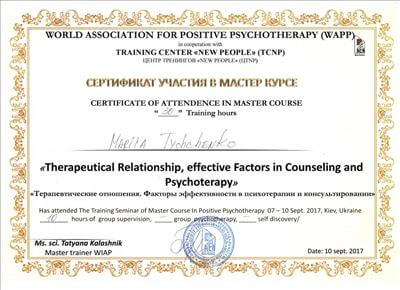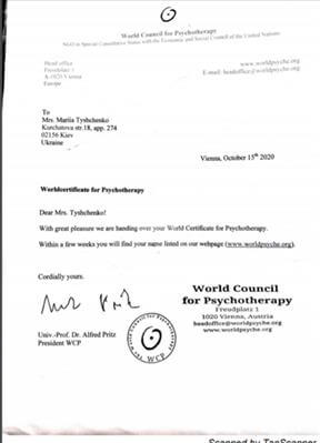 World Association for Positive and Transcultural Psychotherapy (WAPP), Centre for Positive Psychotherapy Ukraine, International School of Psychotherapy and Psychosomatics Tatyana Kalashnik