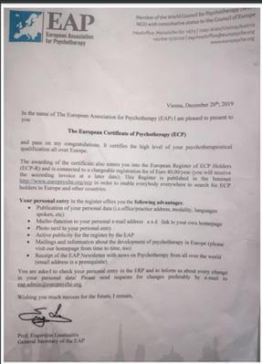 THE EUROPEAN CERTIFICATE OF PSYCHOTHERAPY