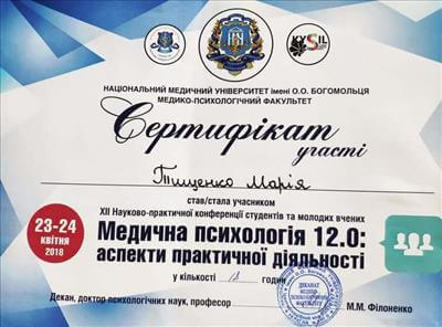 XII Науково-практичної конференції студентів та молодих вчених Медична психологія 12.0: аспекти практичної діяльності