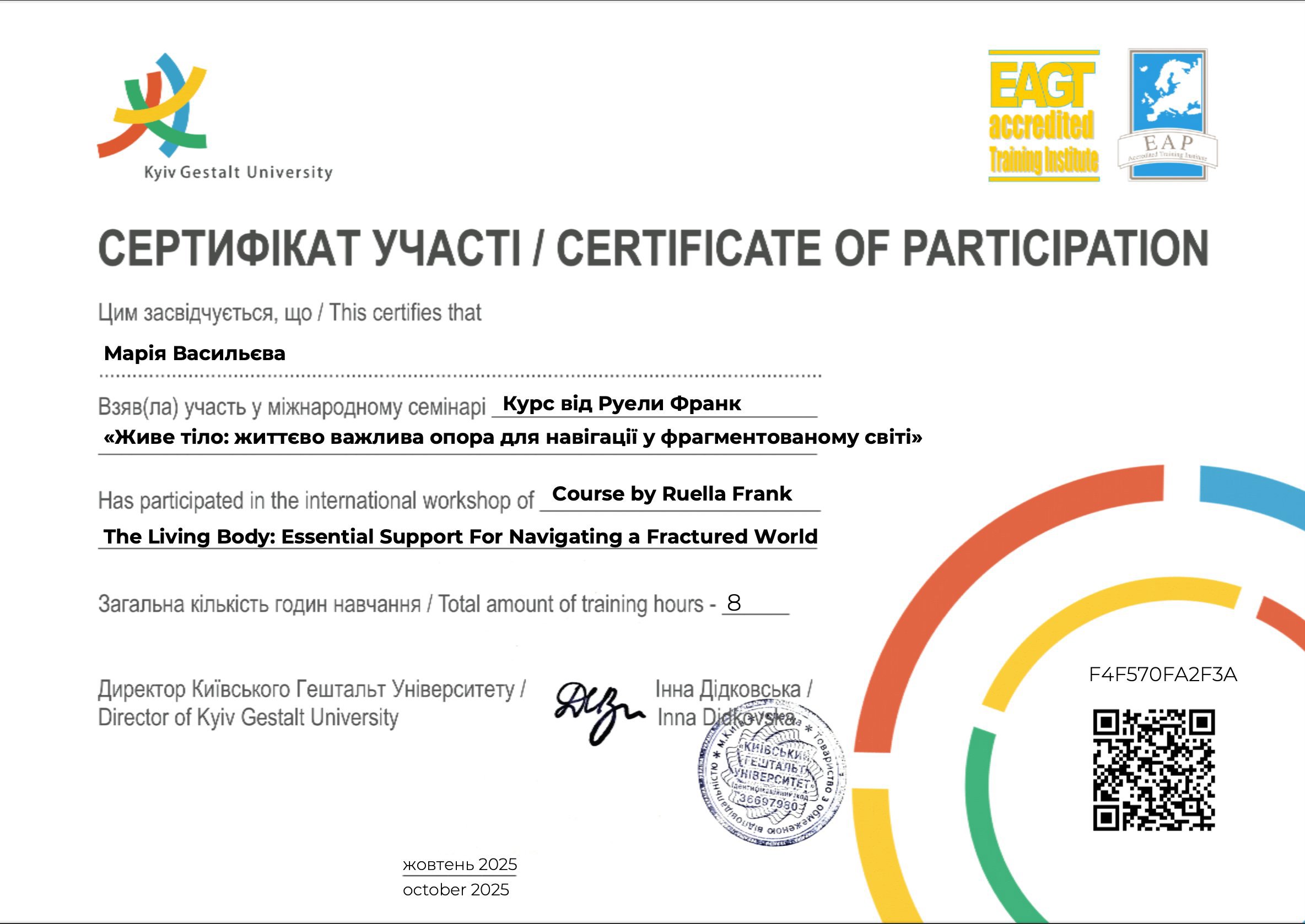 жовтень 2025, Кількість годин - 8