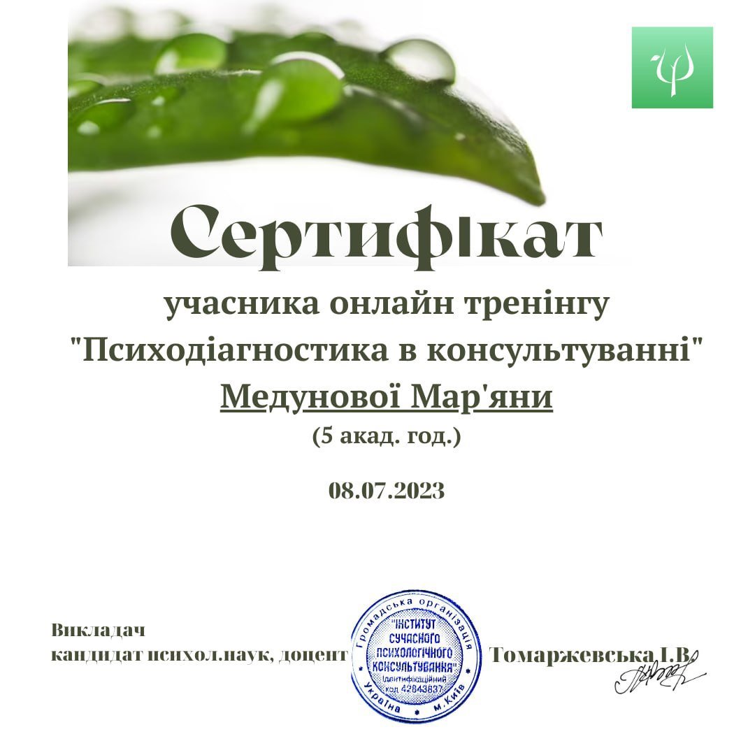 Маю вищу психологічну освіту (КНУ ім. Тараса Шевченка).