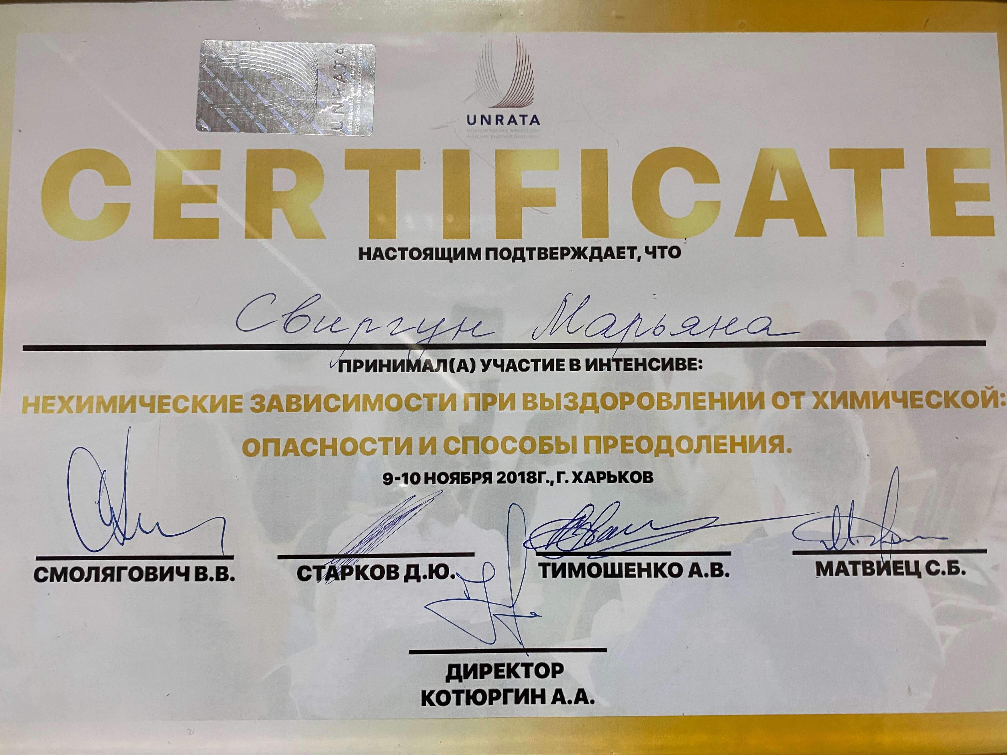 Символдрамма, Пропедефтика Психіатрії, різні підвищення кваліфікації в роботі з 3ависимою поведінкою