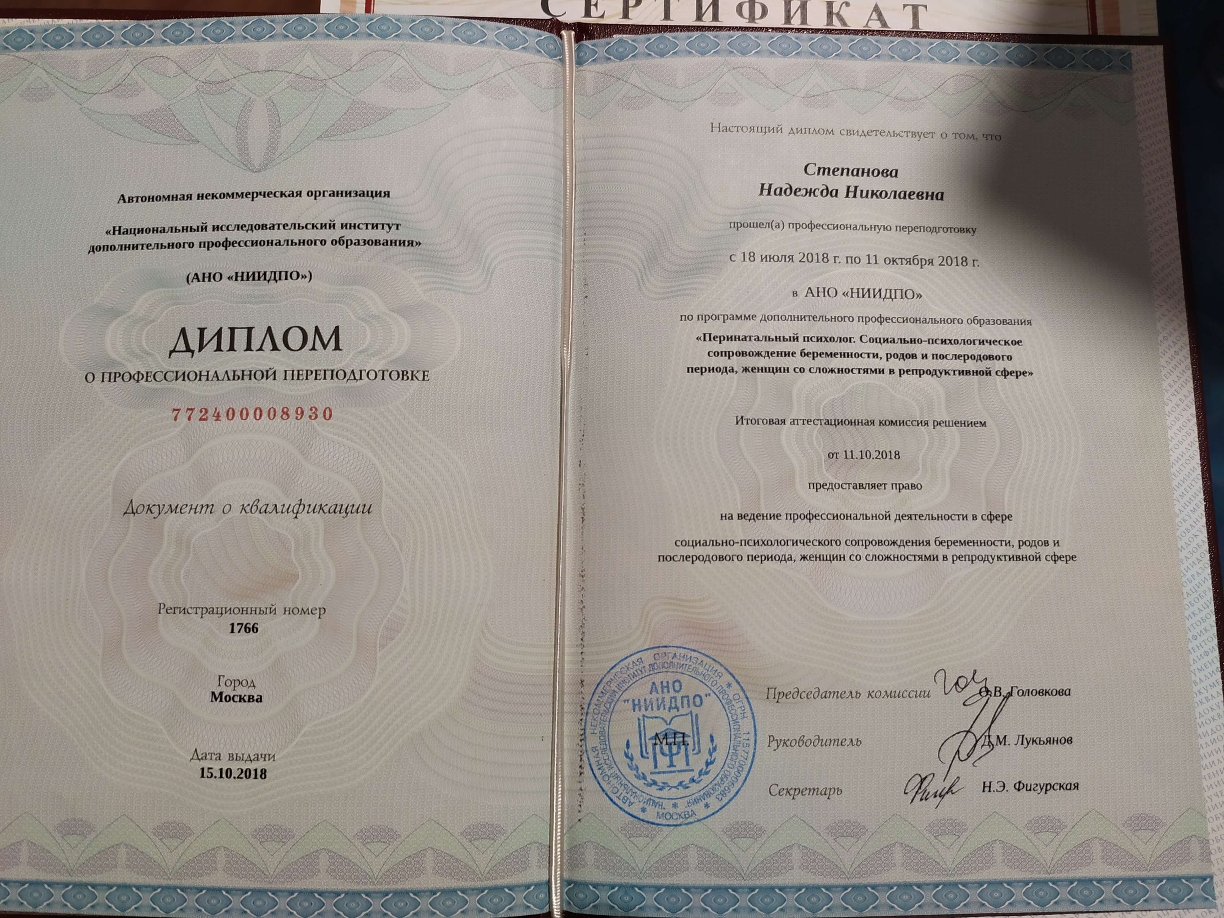 АНО "НДІДПО" "Перинатальний психолог: Соціально-психологічний супровід вагітності, пологів та післяпологового періоду, жінок зі складнощами у репродуктивній сфері" - 2018
