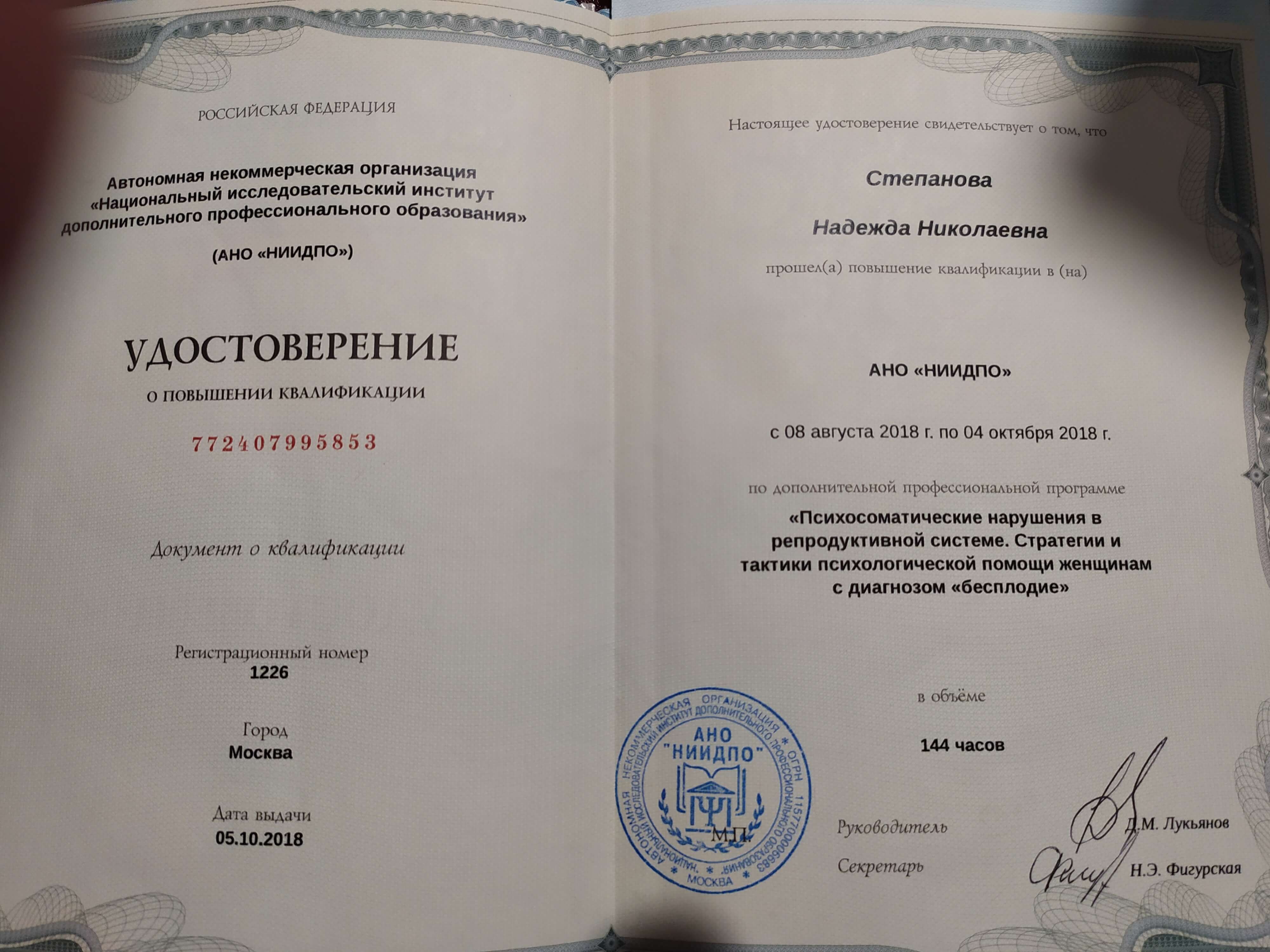 АНО "НДІДПО" "Психосоматичні порушення у репродуктивній системі. Стратегії та тактики психологічної допомоги жінкам з діагнозом "безпліддя" - 2018