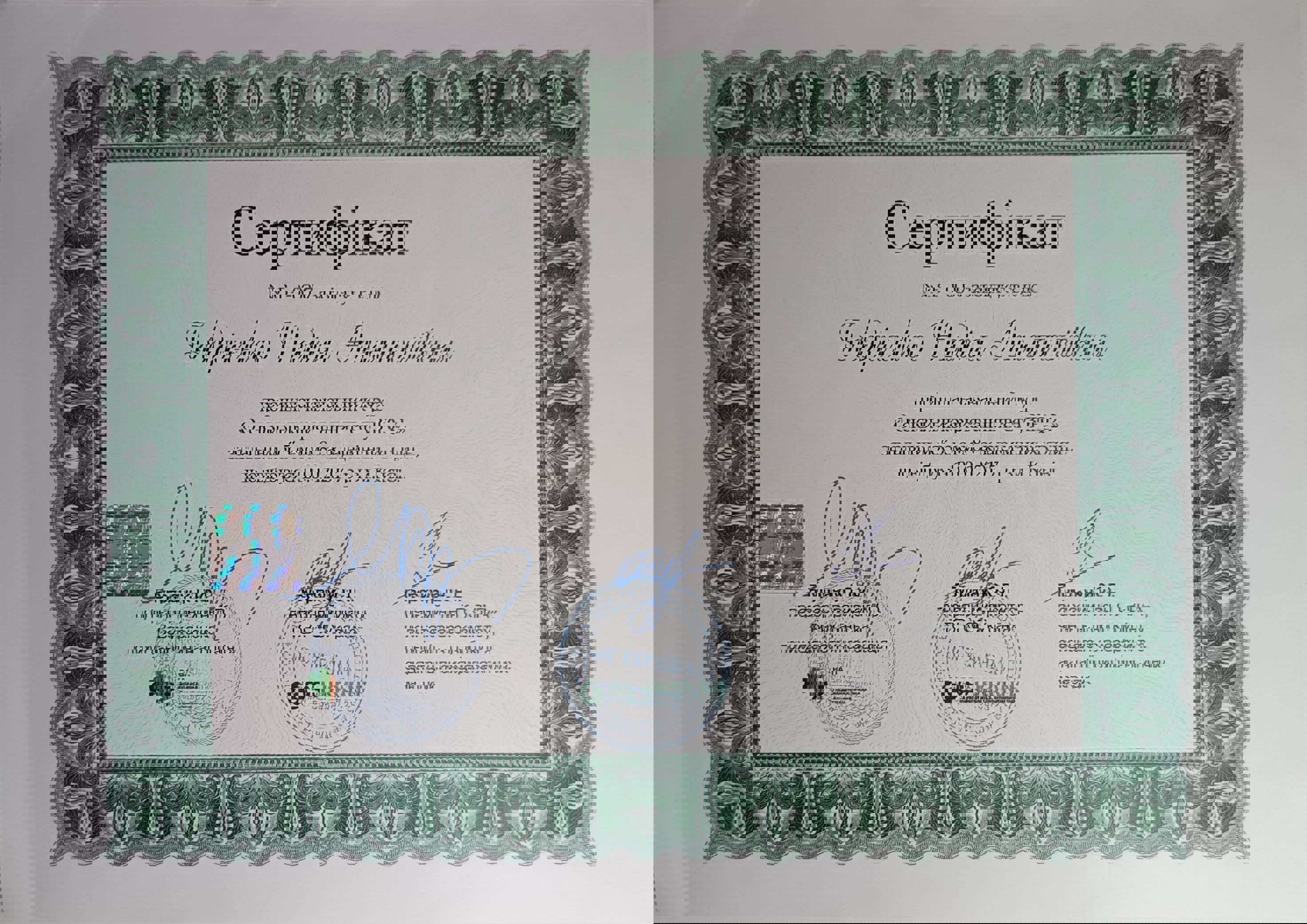 Сертифікати: