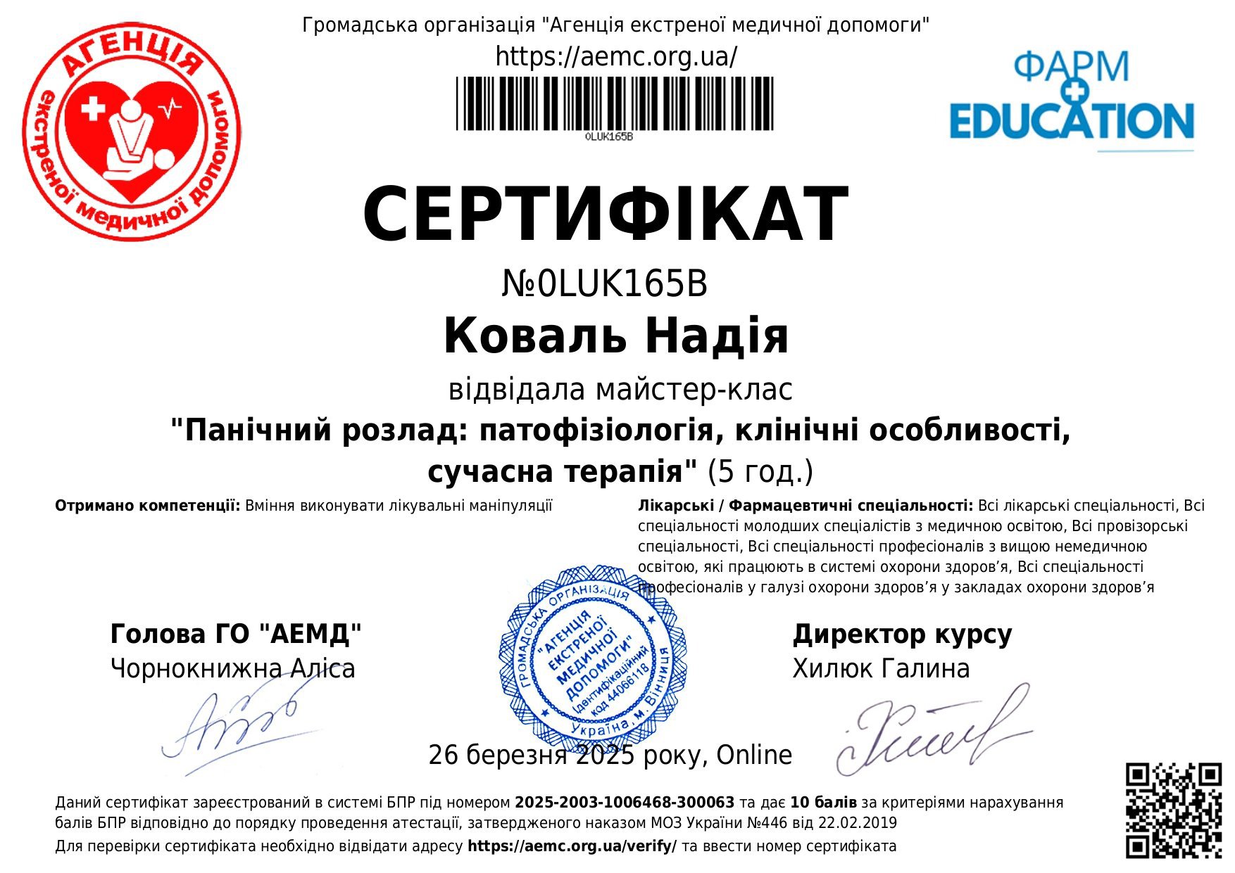 Сертифікати: