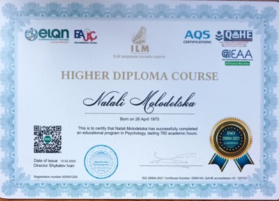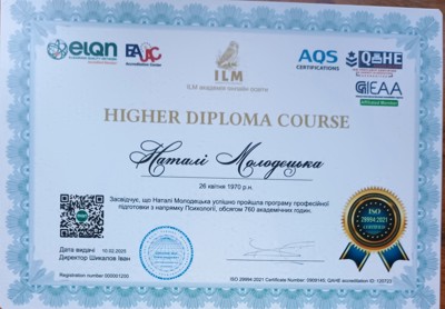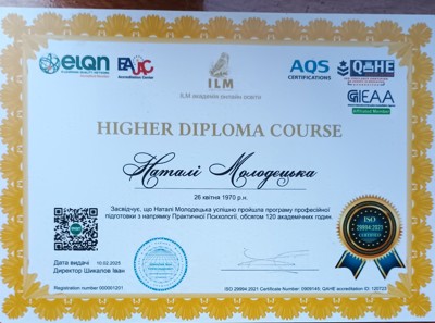 З напрямку Практичної Психології обсягом 120 академічних годин