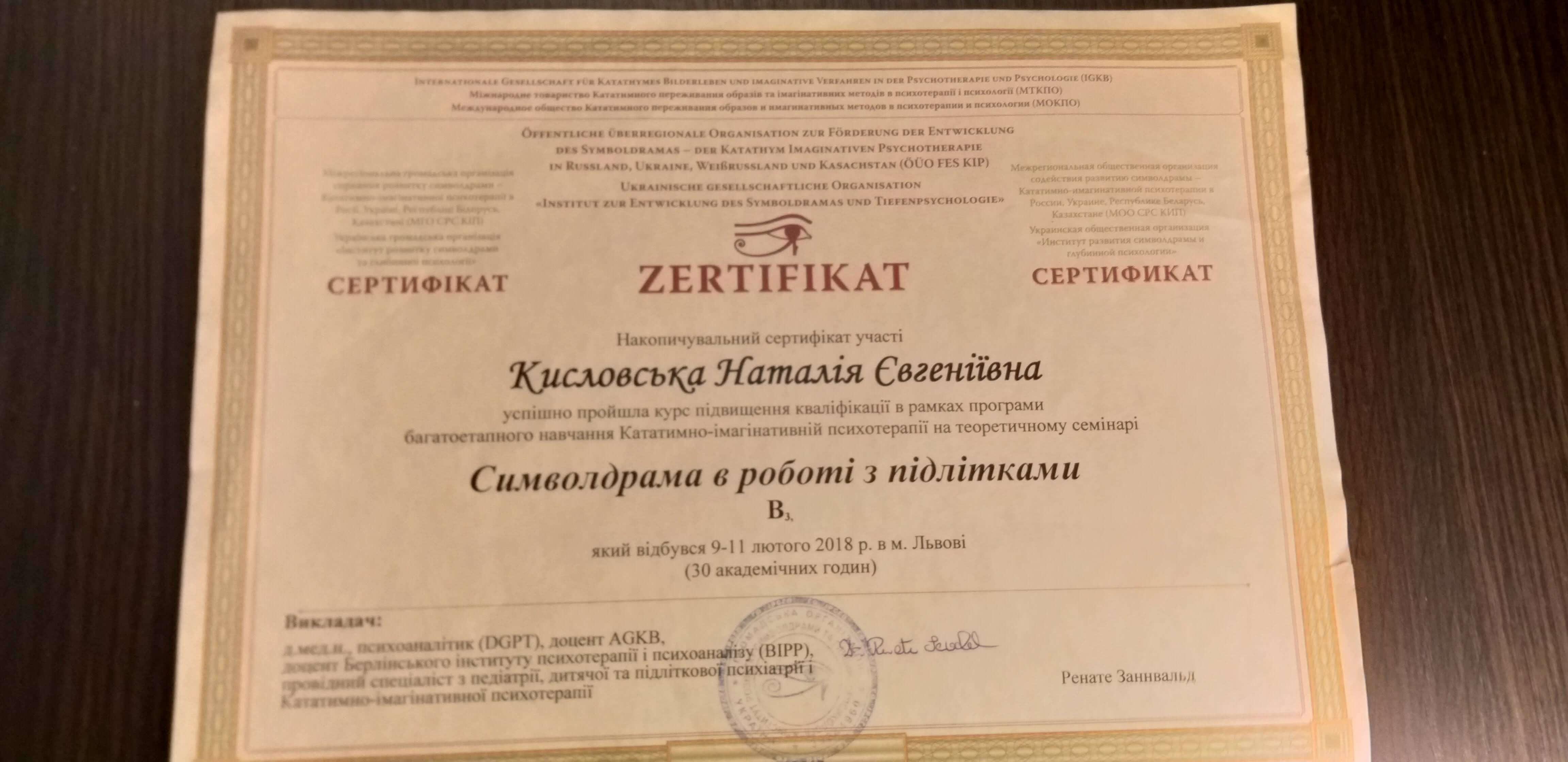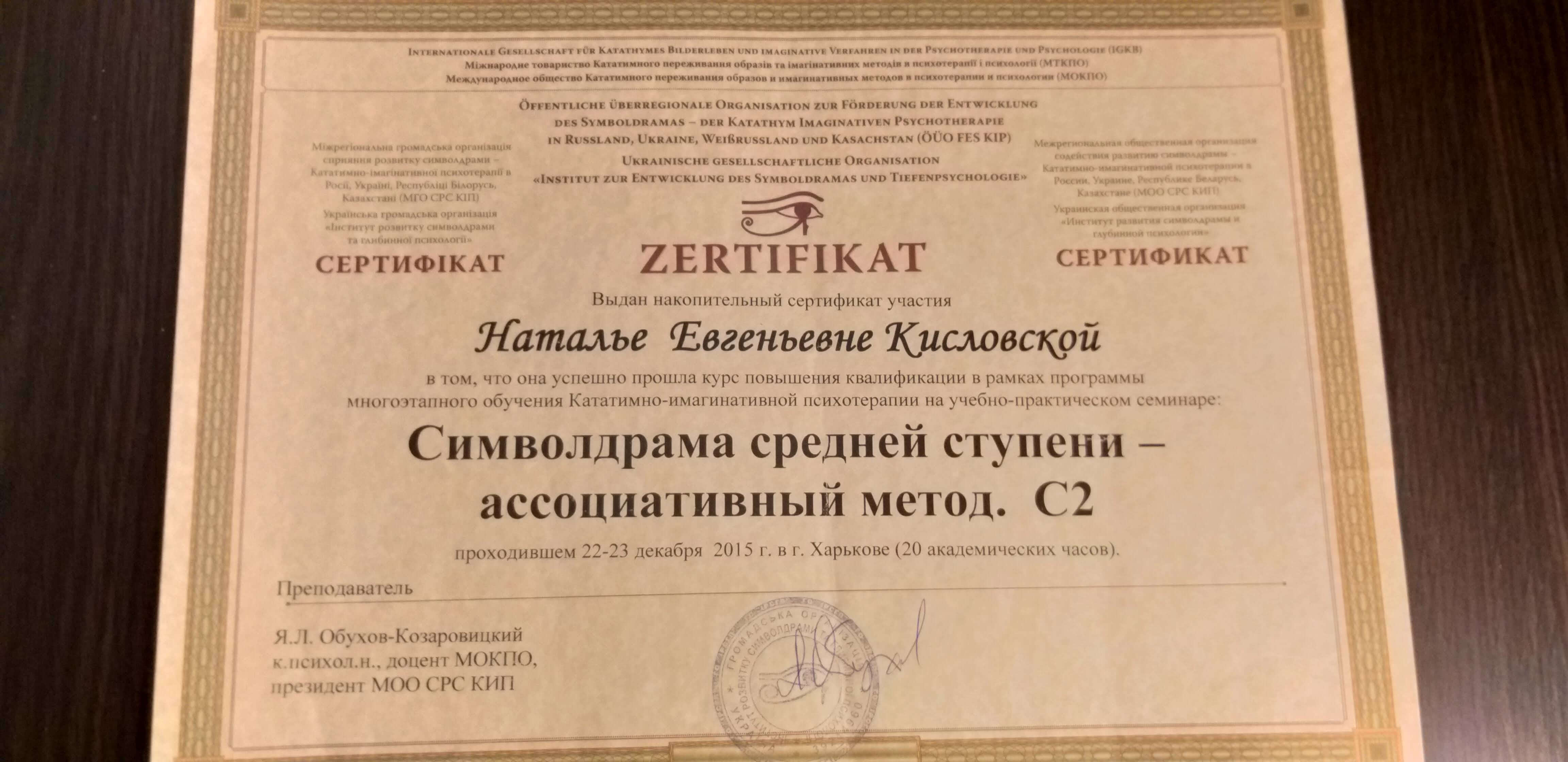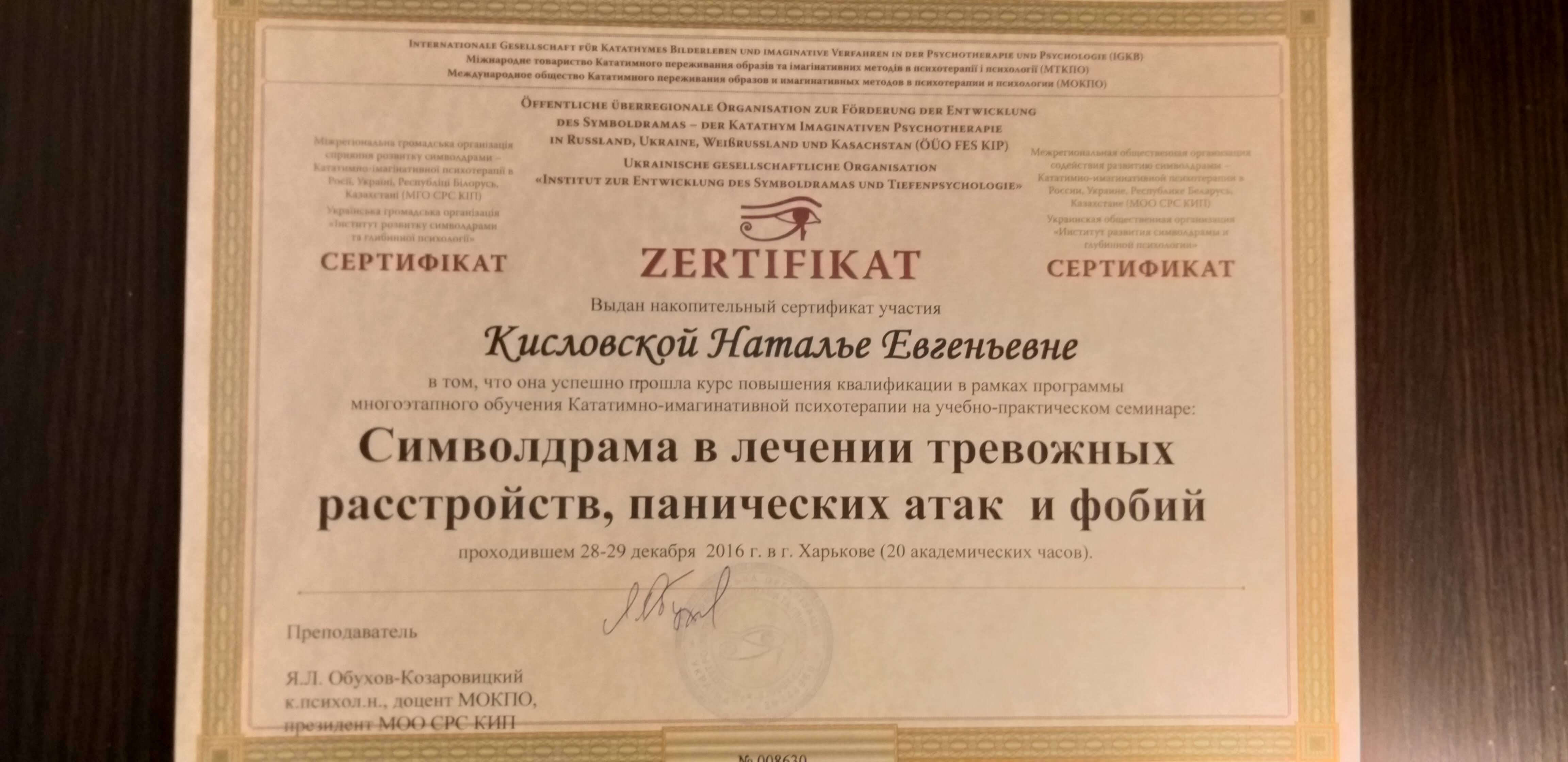Виданий: Міжрегіональна громадська організація сприяння розвитку символдрами Кататимно-імагінативної психотерапії в Росії, Україні, Республіці Білорусь,