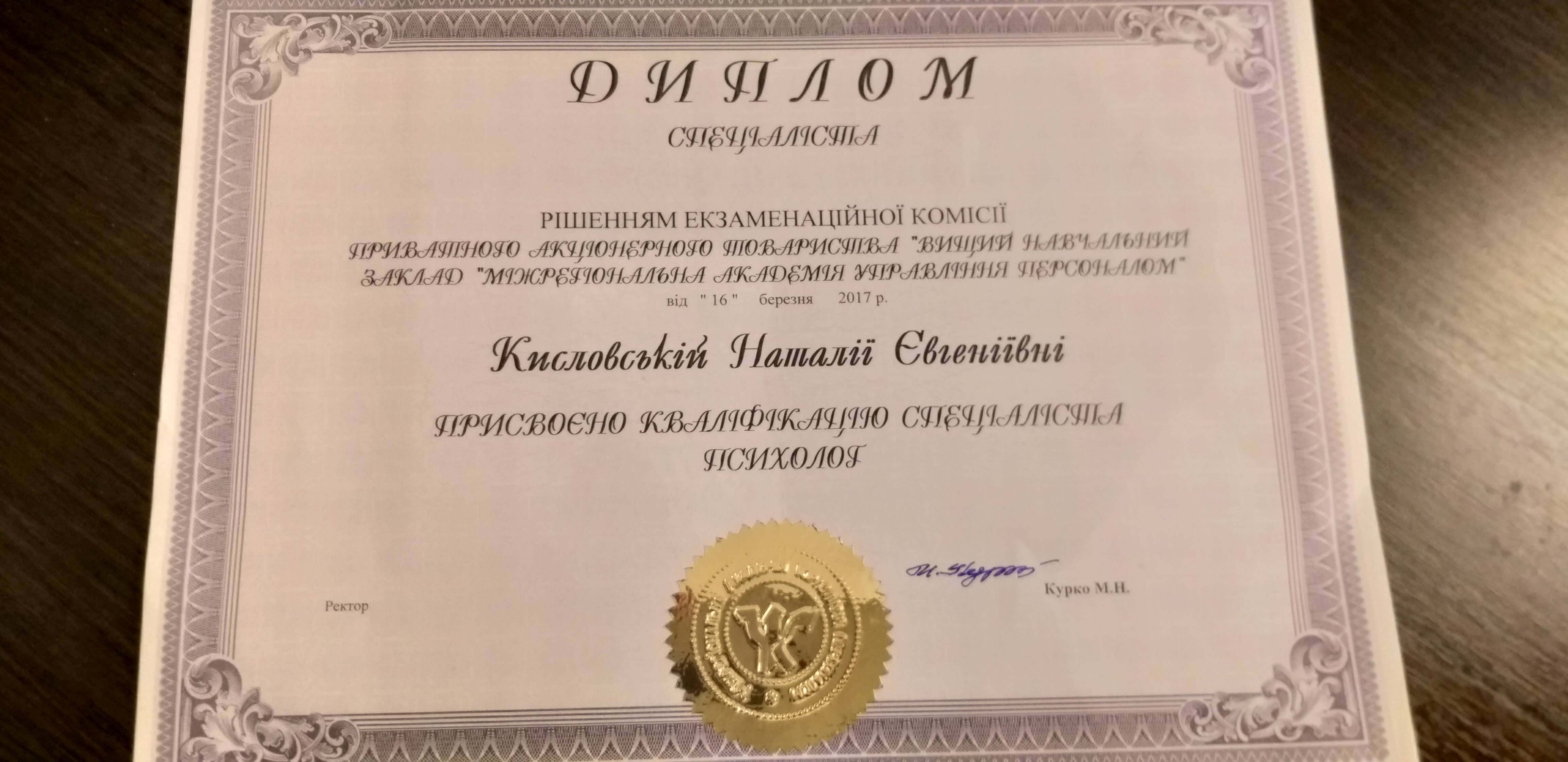 Спеціальність: психолог