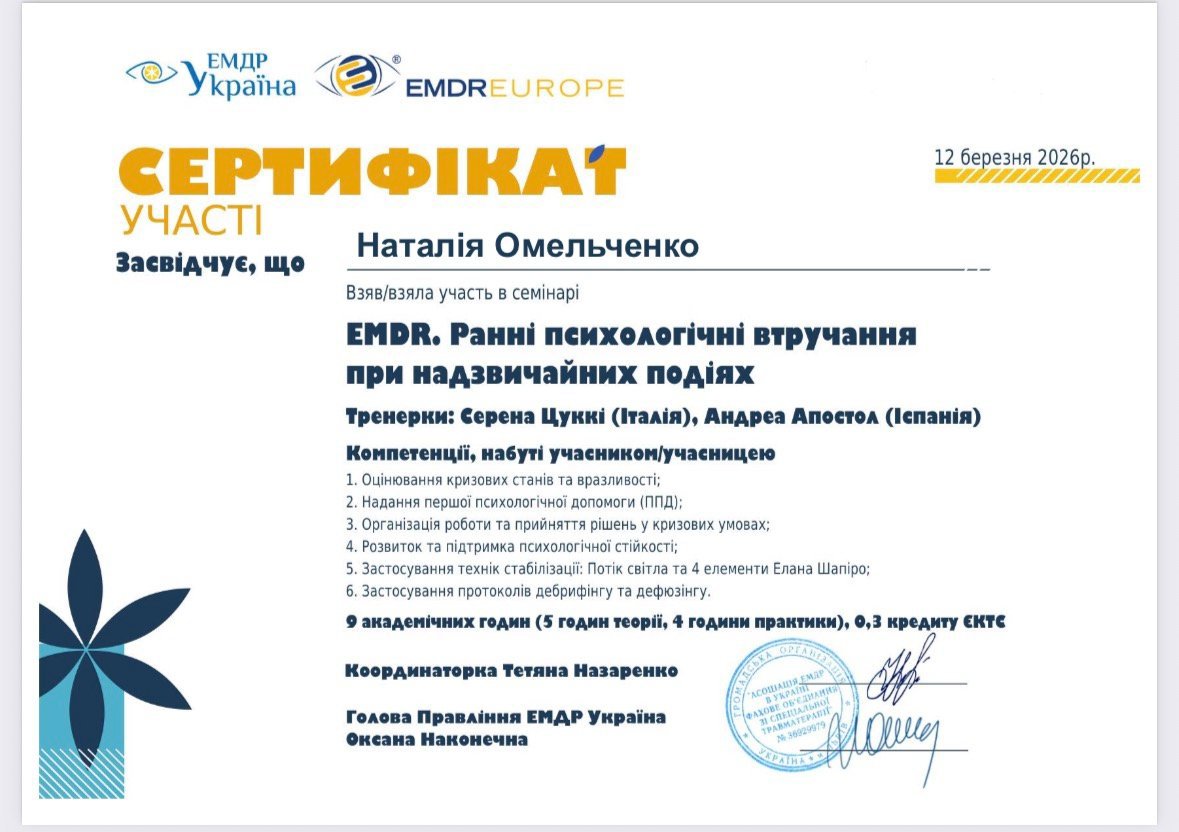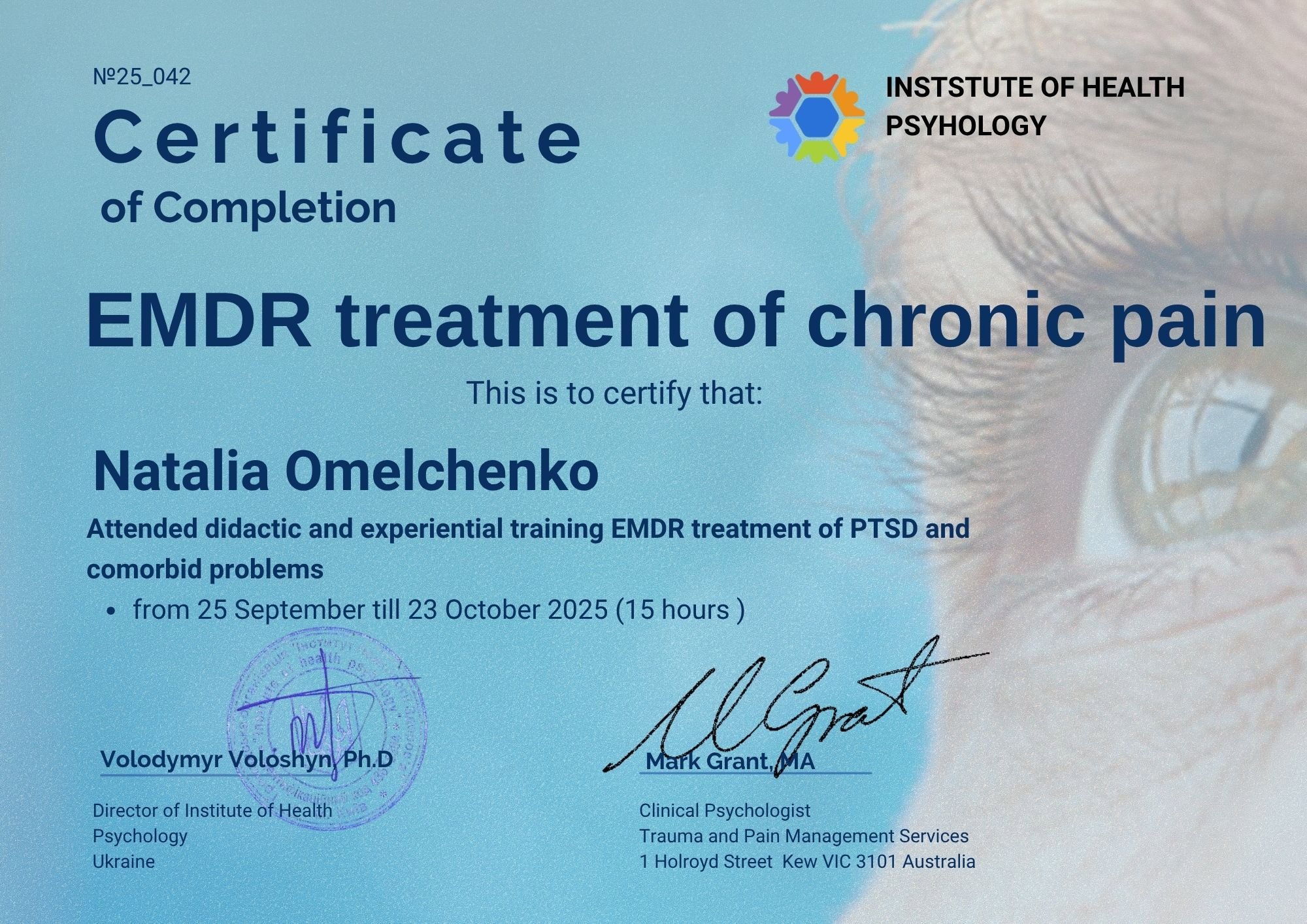 У роботі я інтегрую різні методи та розробляю індивідуальний план терапії для кожного клієнта.