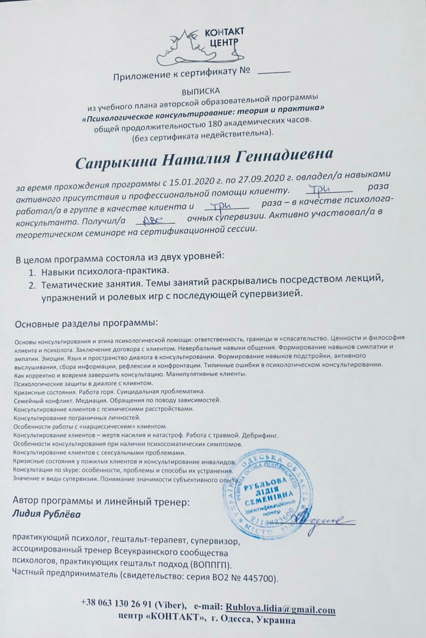 -Освітня програма «Психологічне консультування: теорія та практика», Лідія Рубльова.